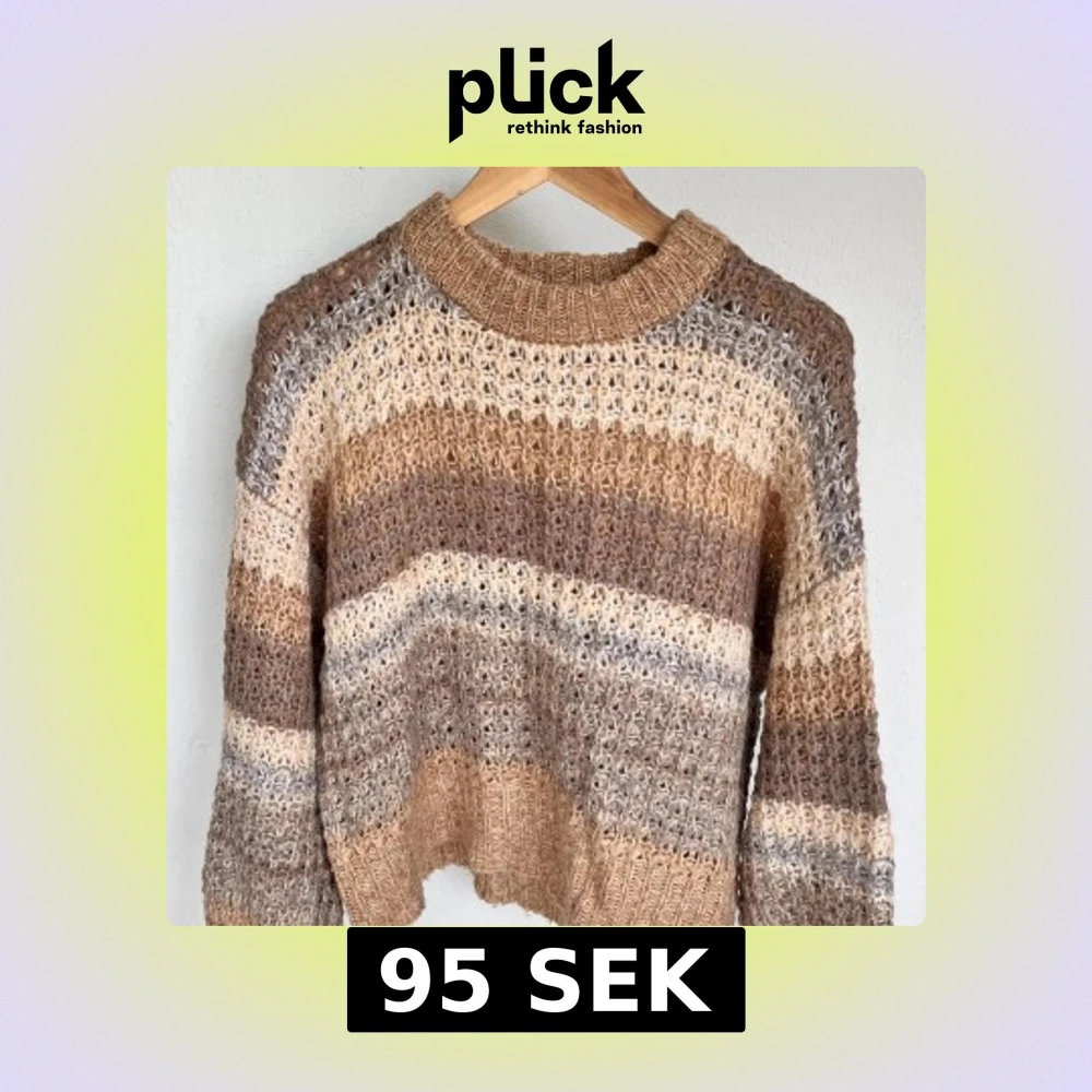 Supermysig stickad tröja med breda ränder i beige, brunt och grått. Tröjan har en chunky känsla med grovstickad struktur och ribbad hals, ärmslut och nederkant. Perfekt för dig som gillar chill och avslappnad stil. Liten i storleken, skulle säga att den sitter mer som en S