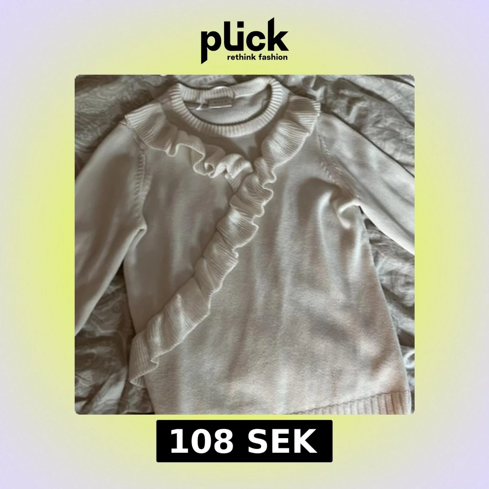 Supersöt vit stickad tröja från Vila med lång ärm och snygg volangdetalj som går diagonalt över framsidan. Tröjan har ribbad halsringning och muddar, perfekt för dig som gillar en feminin och trendig look.