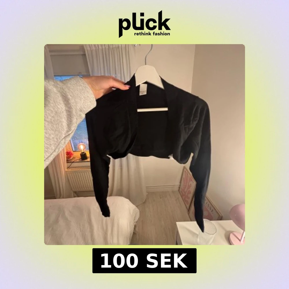 Svart bolero från Vila med långärmad design och ribbad kant vid halsen och nederdelen. Perfekt att slänga över en topp för en chill look. Mjuk och tunn i materialet!💖