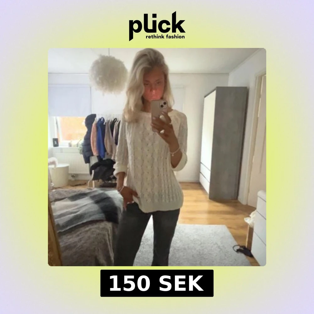 Säljer en skön stickad tröja med kabelstickat mönster. Tröjan har tre kvarts armar🥰