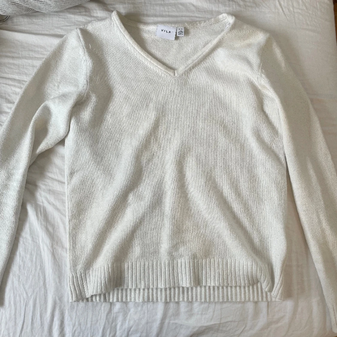 jättefin vit stickad tröja från Vila. Köpte för 350kr.💓 Den är i jätte bra skick!