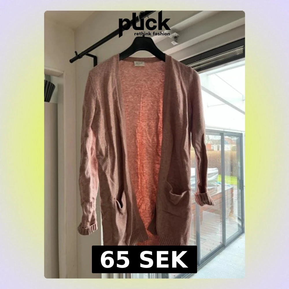 Mysig och stilren ljusrosa kofta från VILA med öppen front och två fickor framtill. Lång modell med ribbade muddar vid ärmslut och nederkant. Perfekt att slänga på sig över en t-shirt eller topp.