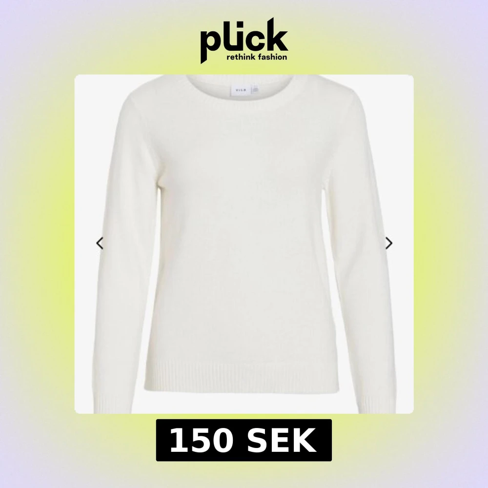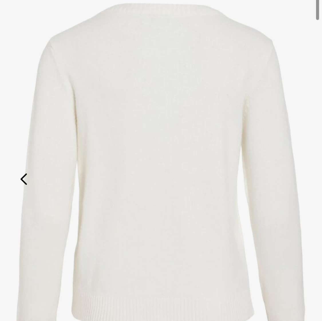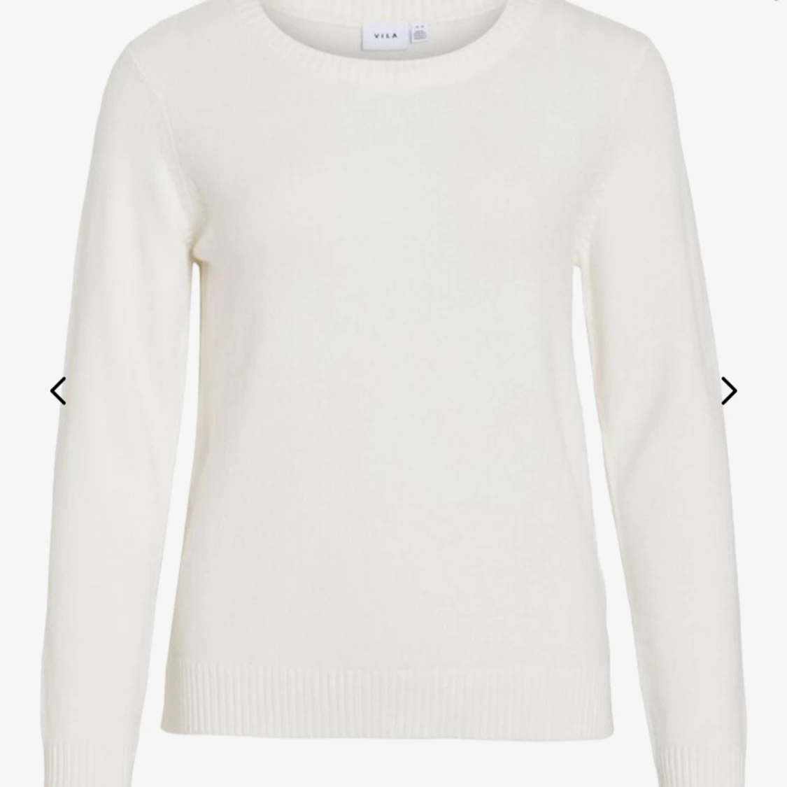 Klassisk vit stickad tröja från Vila med rund halsringning och långa ärmar. Tröjan har ribbade muddar vid ärmslut och nederkant, vilket ger en snygg och enkel look. Perfekt att styla med jeans eller kjol för en clean vibe.
