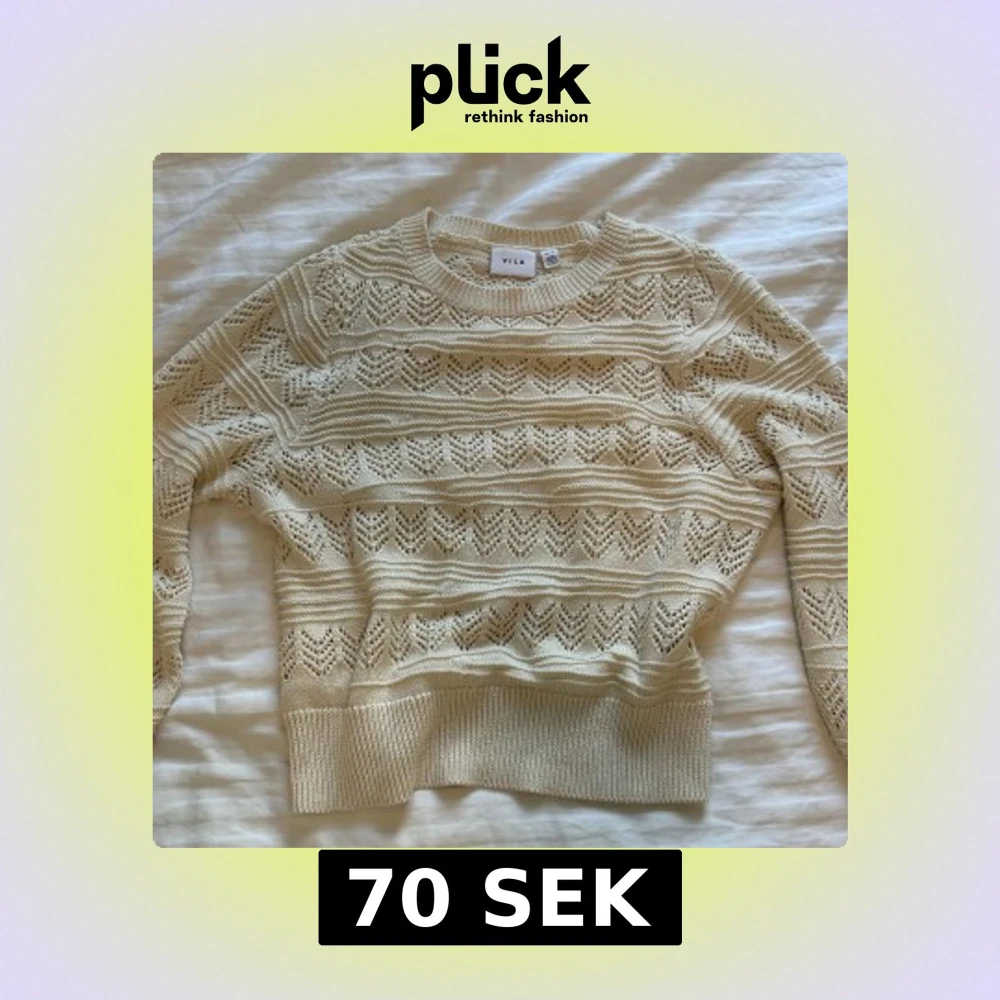 Superfin beige stickad tröja från Vila med snyggt hålmönster och rund halsringning. Tröjan har ribbade muddar och ett luftigt, mönstrat stickat tyg som ger en fräsch och trendig look. Perfekt att styla med jeans eller kjol.