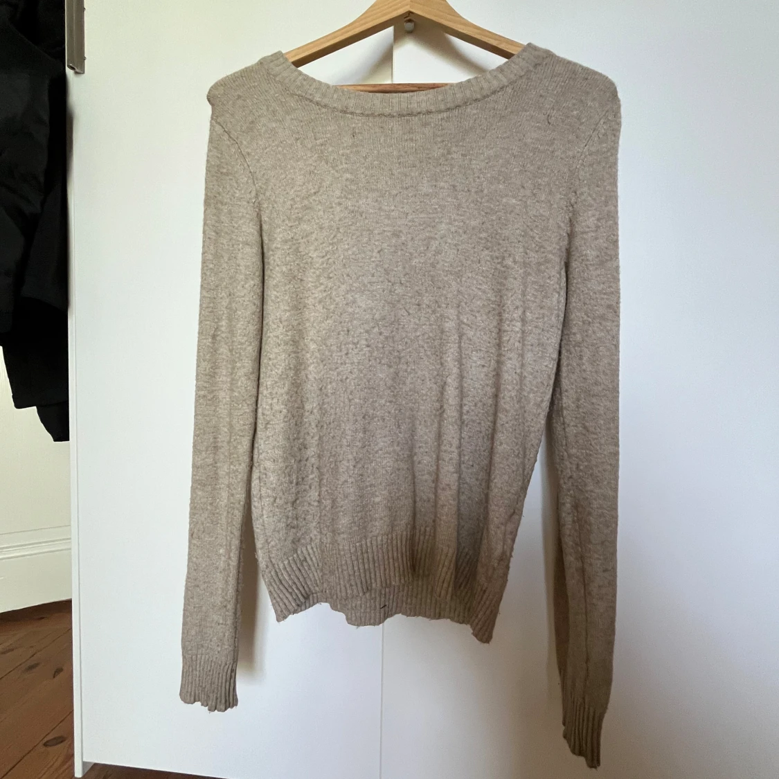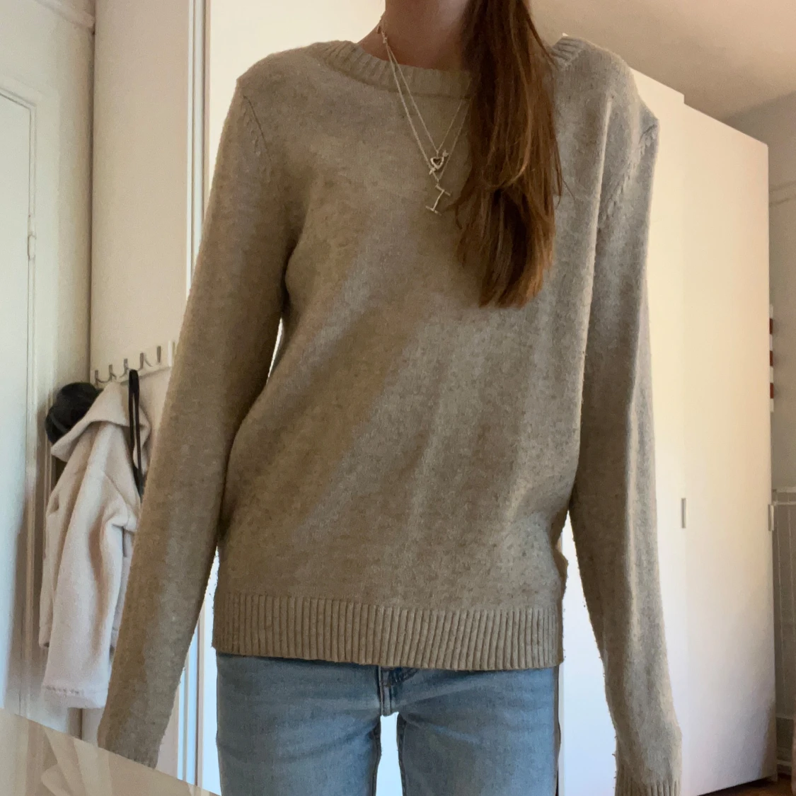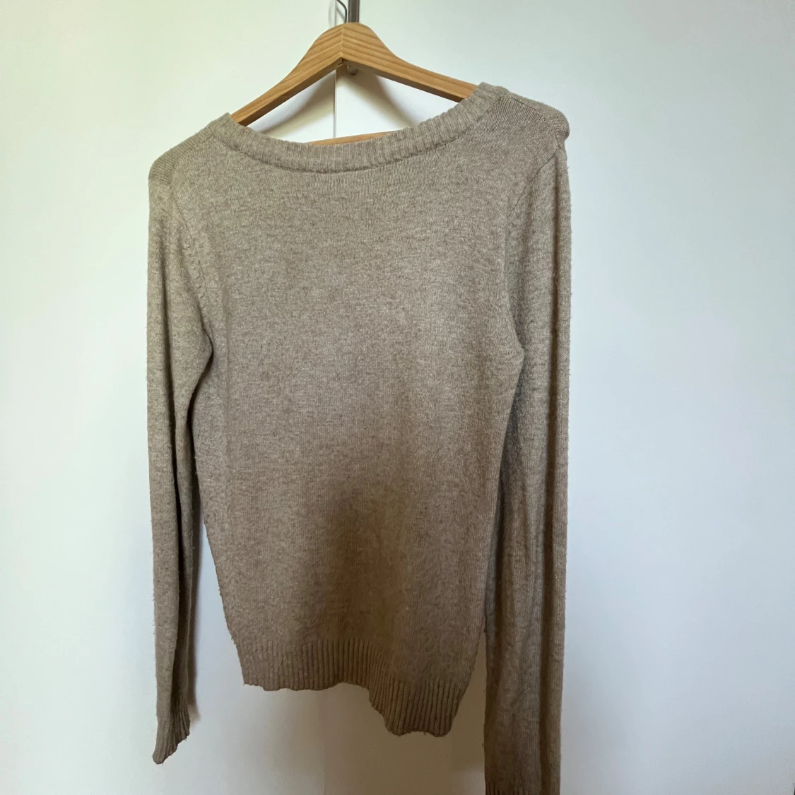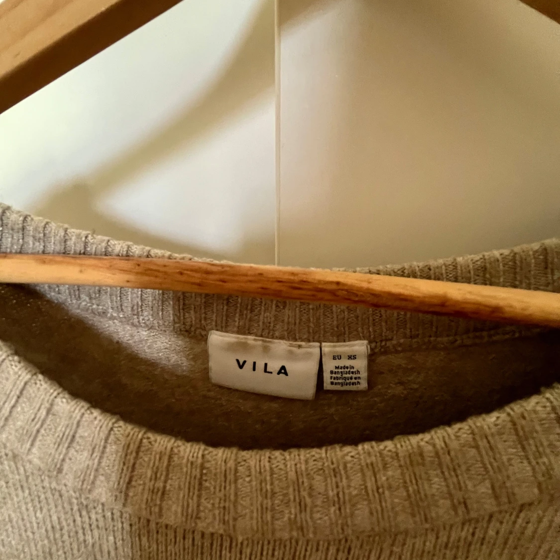 Säljer en stilren beige tröja från VILA. Tröjan är långärmad och har en rund halsringning med ribbade muddar vid ärmslut och nederkant. Perfekt för en avslappnad och bekväm stil. Lite nopprig, storlek xs