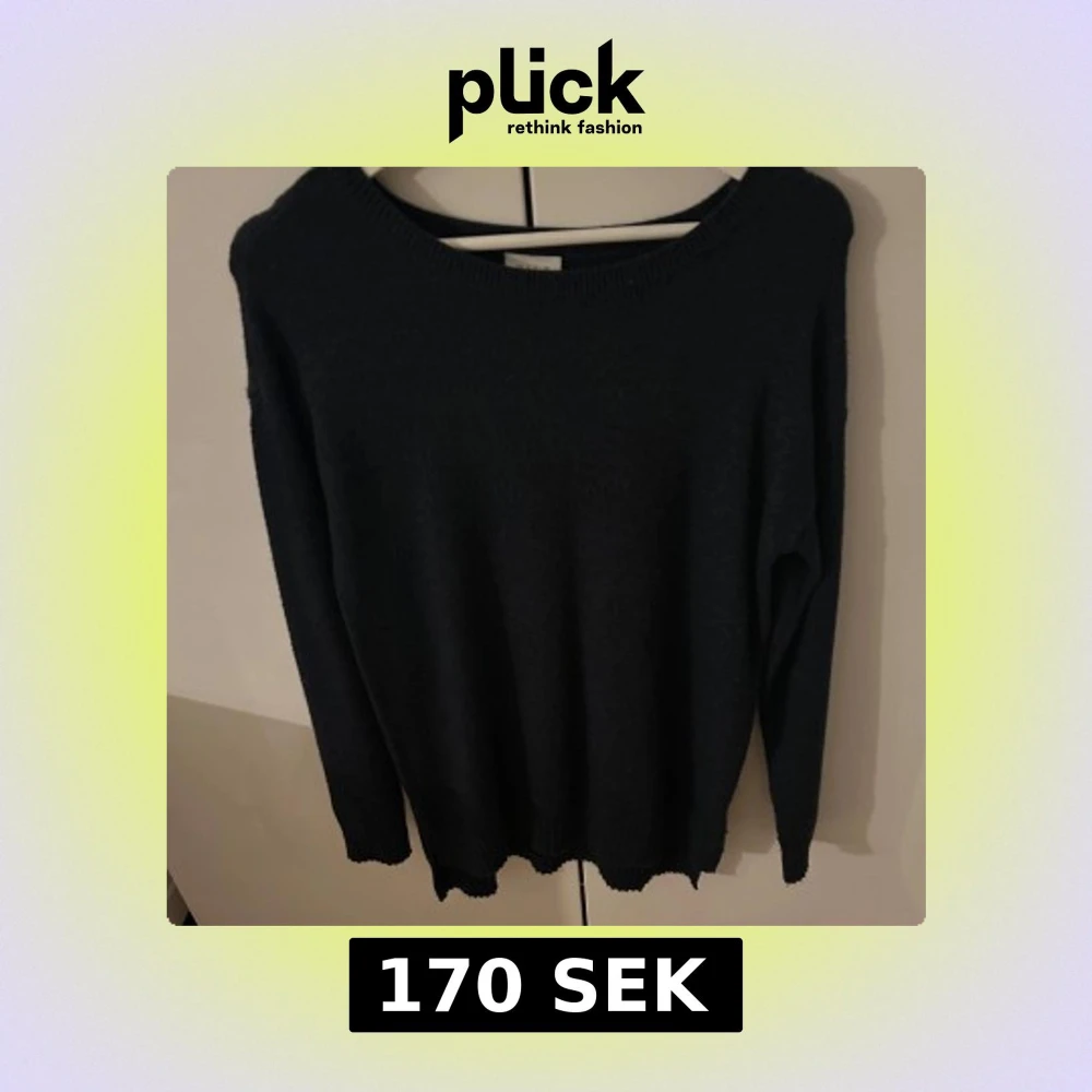 Säljer en stilren mörkblå stickad tröja med rund halsringning. Perfekt för kyligare dagar och enkel att matcha med olika outfits.