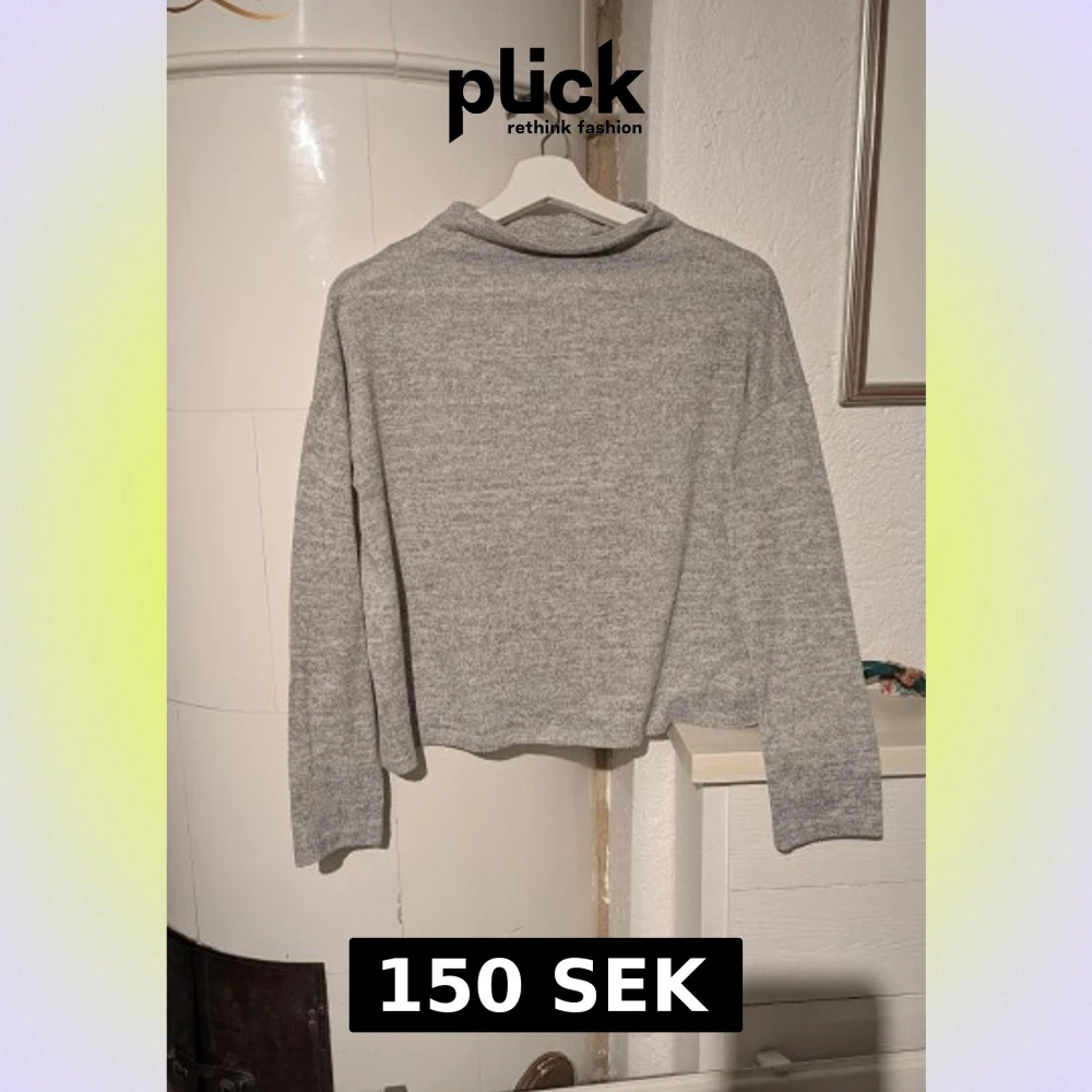 Snygg grå croppad stickad tröja med lång ärm och enkel design. Perfekt för dig som gillar en chill och stilren look. Mjuk och skön känsla, passar till jeans eller kjol. Tröjan har en rak passform och är lätt att matcha med andra plagg.
