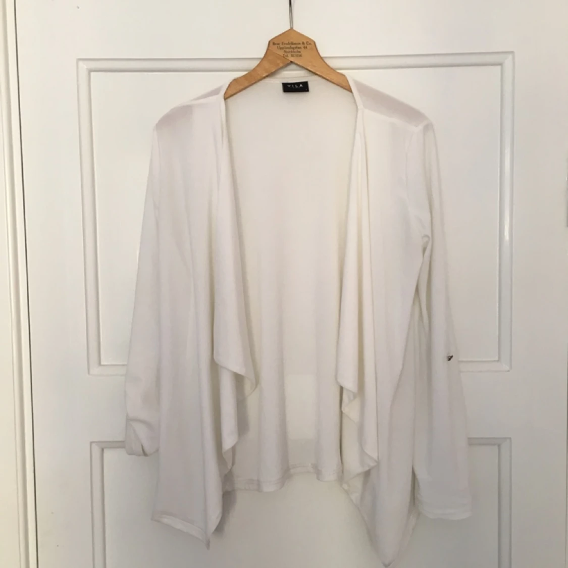 Härlig vit cardigan från VILA. Mjukt material som faller fint. Endast använd ett fåtal gånger. Kan mötas upp eller skicka om köparen står för frakt.