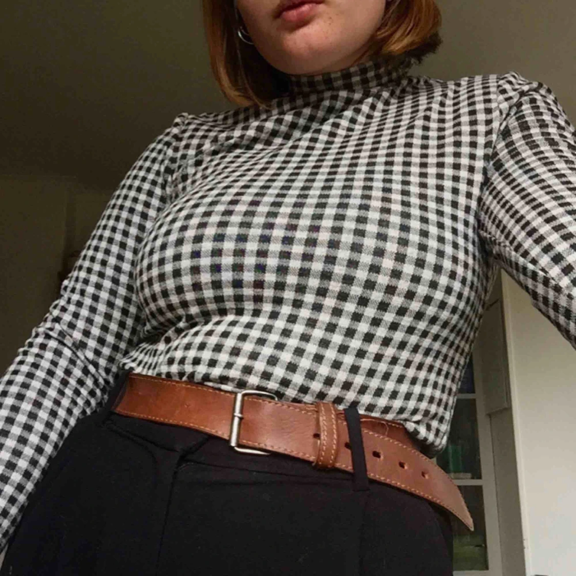 Jättesnygg svart-vitrutig polotröja från VILA! Använd en gång, jättefint skick. Står storlek L på tröjan, men skulle säga att det snarare är M