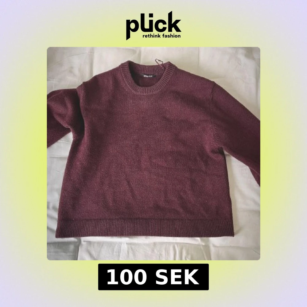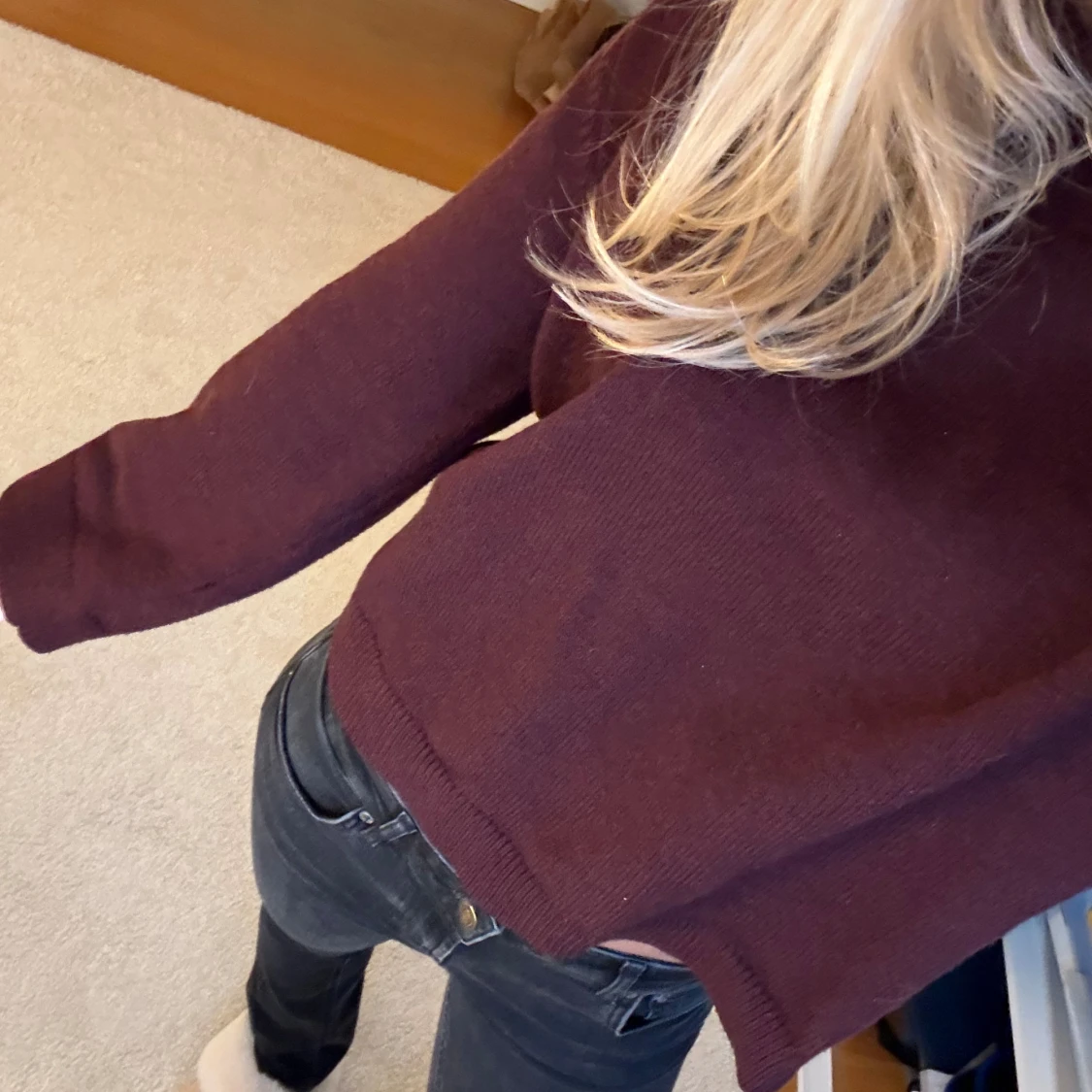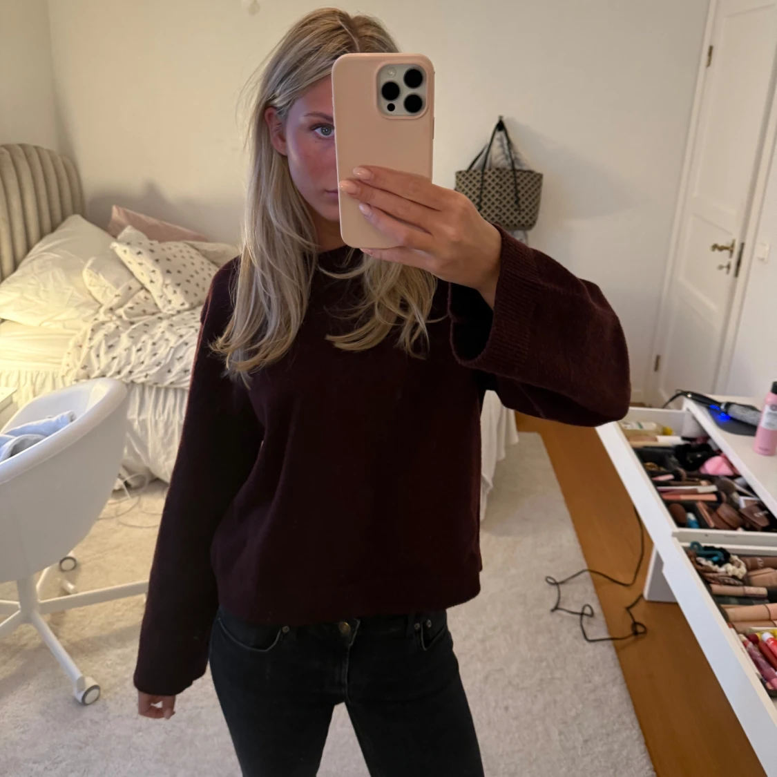 Burgundy/vinröd stickad tröja ifrån Gina. Några av bilderna är från den förra säljaren, köpt för ett litet tag sen. Inga defekter eller fel, bara klar med den😊
