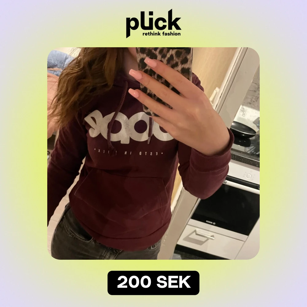 Säljer en snygg vinröd hoodie från Dope i storlek 34.💞