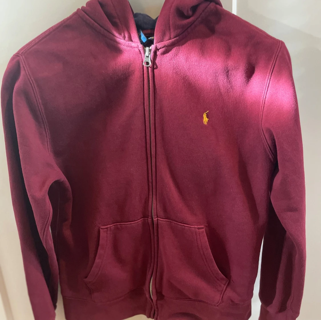 Hej, säljer min vinröda polo Ralph lauren ziphoodie. Den är i bra skick, men använd. Det är storlek L i barn (14-16 år).