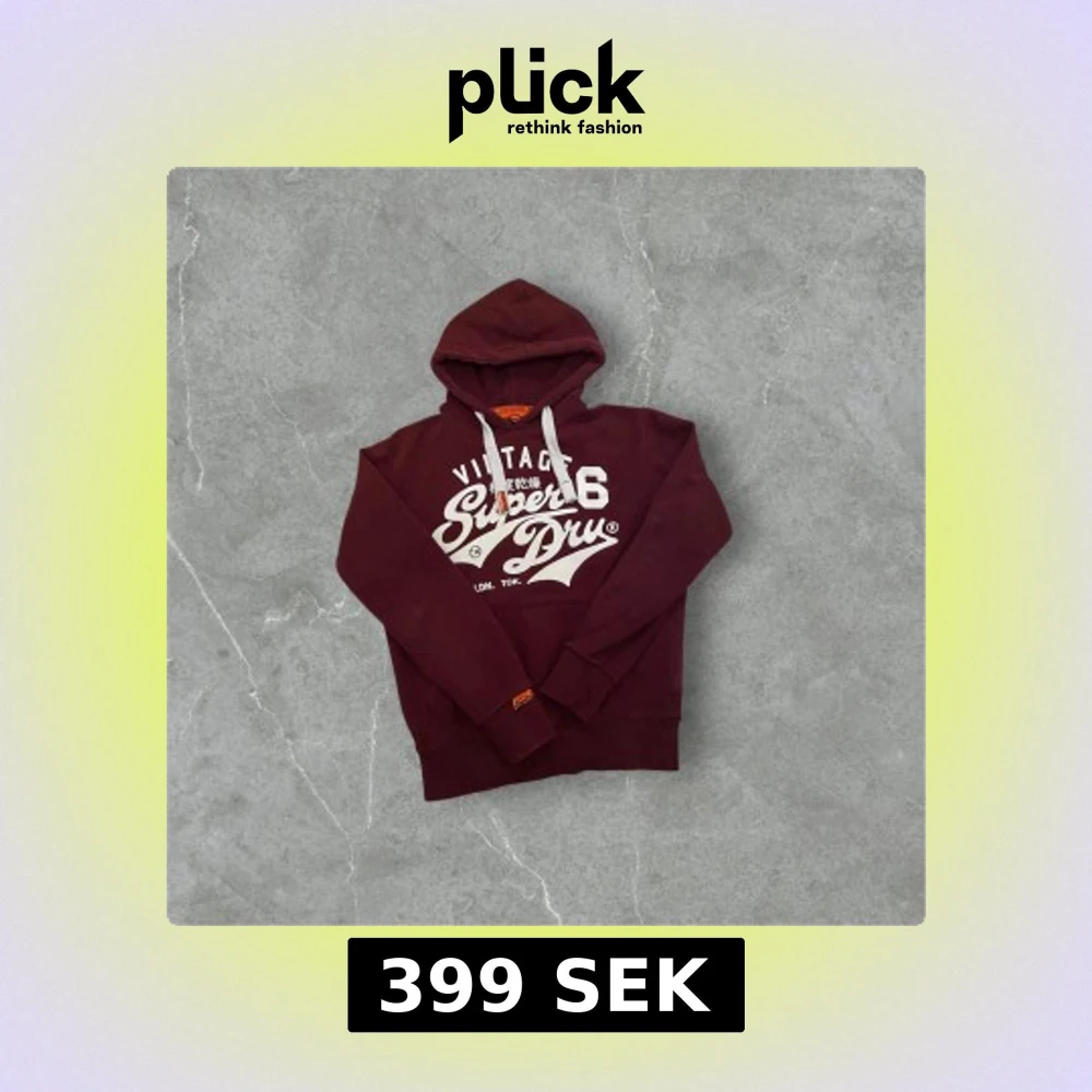 Säljer en vinröd hoodie från Superdry med vit text och logga på framsidan. Storlek: S Skick:9/10