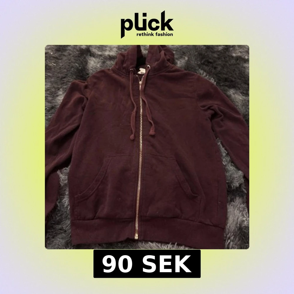 Mysig vinröd hoodie med dragkedja framtill och två fickor. Tröjan har huva med dragsko och ribbade muddar vid ärmslut och nederkant. Perfekt för kyliga dagar.