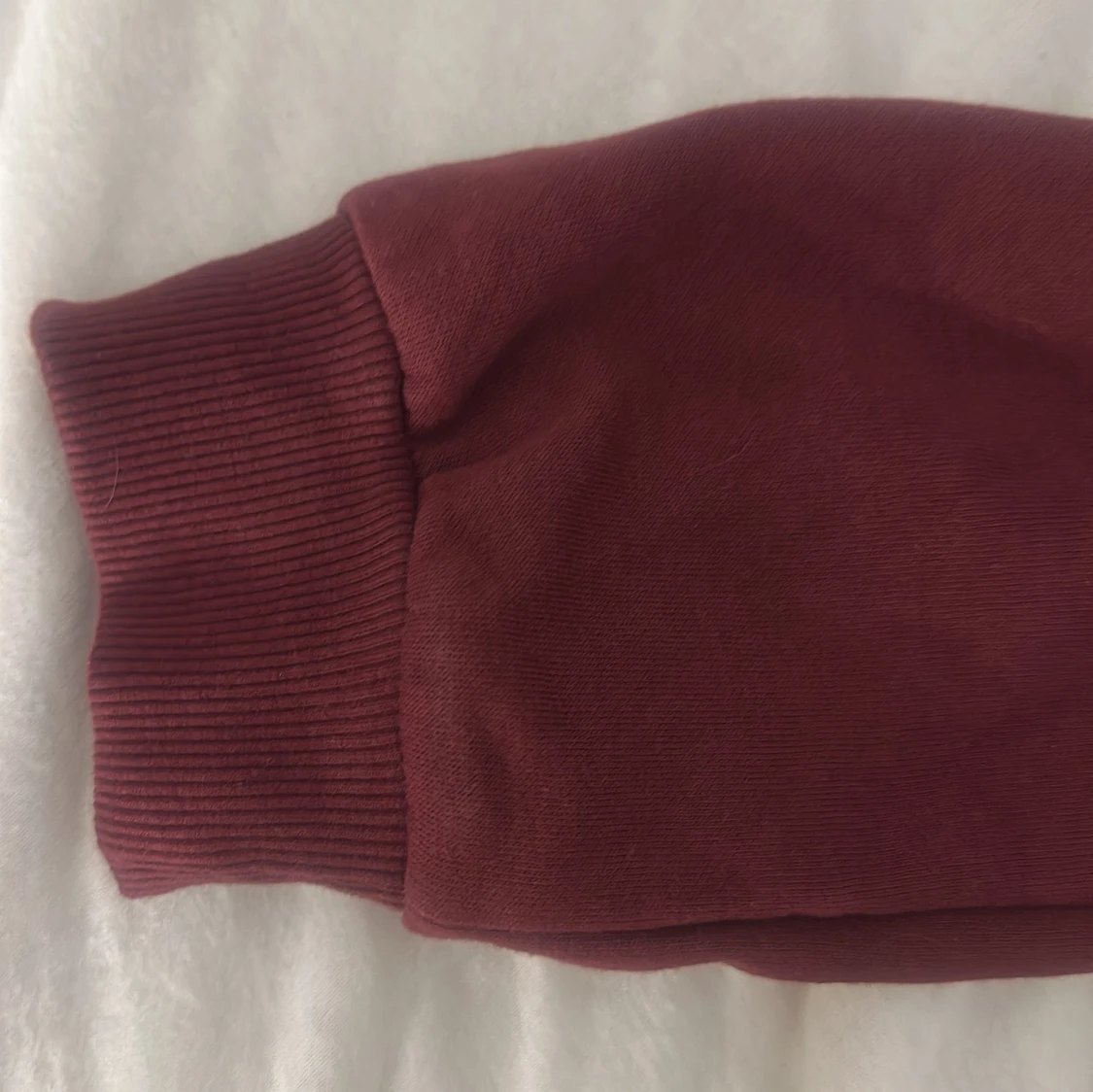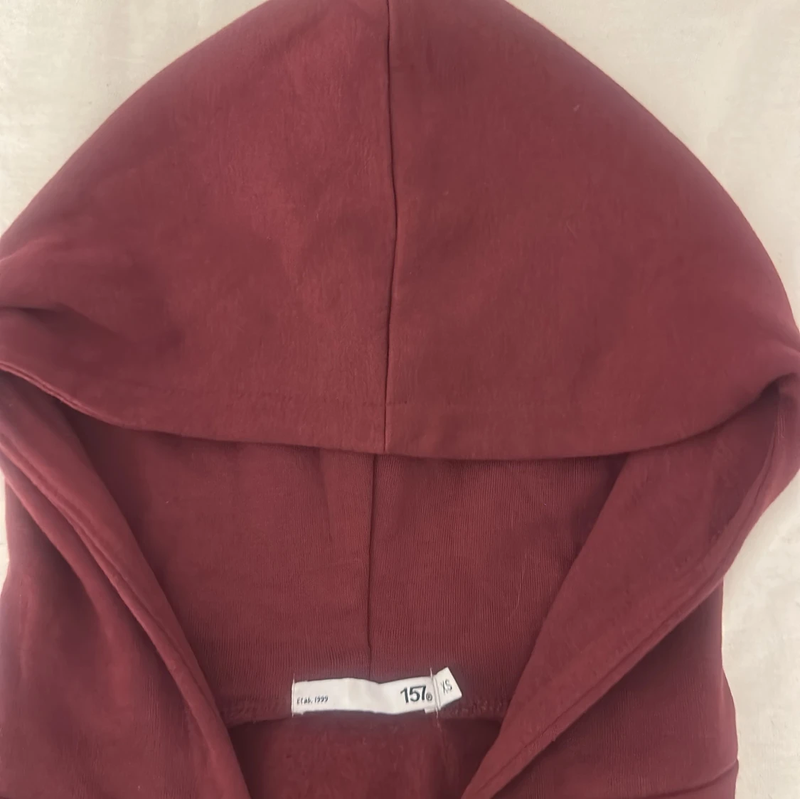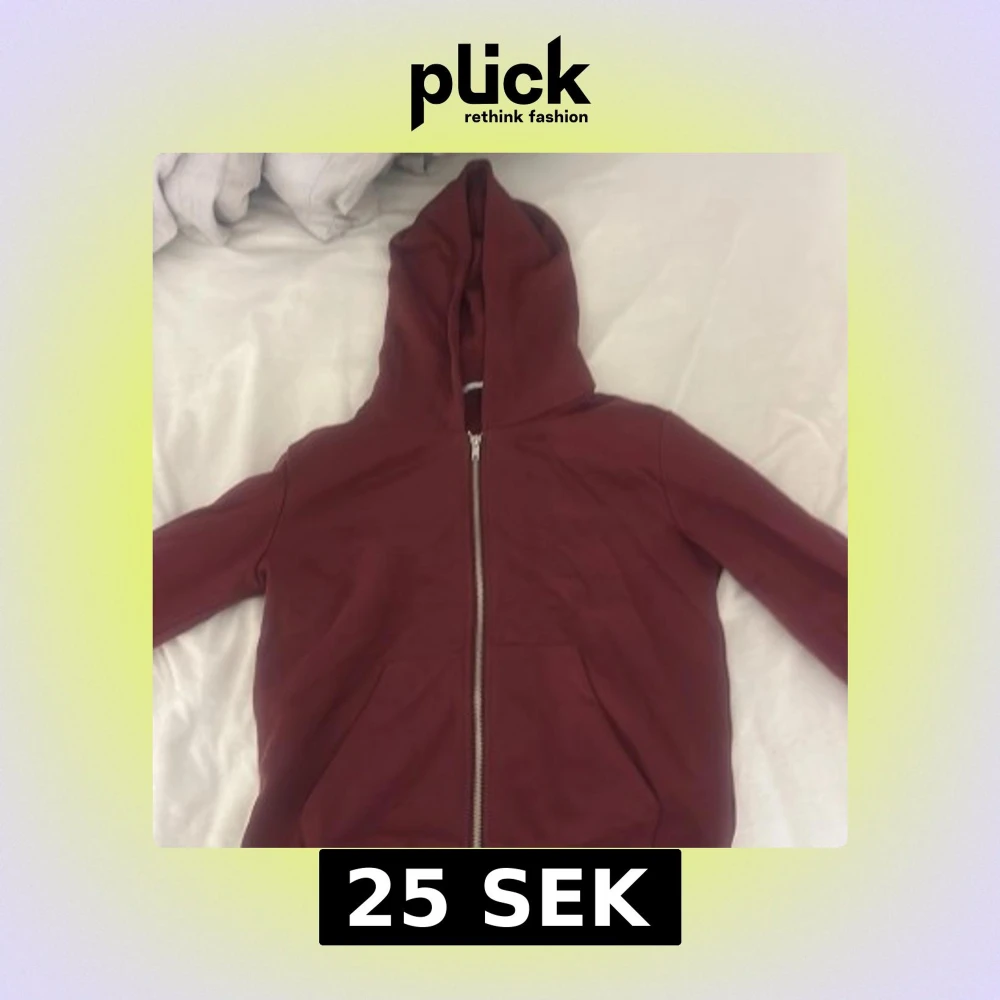 Vinröd hoodie från 157 i storlek XS. Tröjan har huva, hel dragkedja framtill och två fickor. Mjukt bomullsmaterial och ribbade muddar vid ärmslut. Perfekt för chill dagar och enkel att matcha med jeans eller joggers.