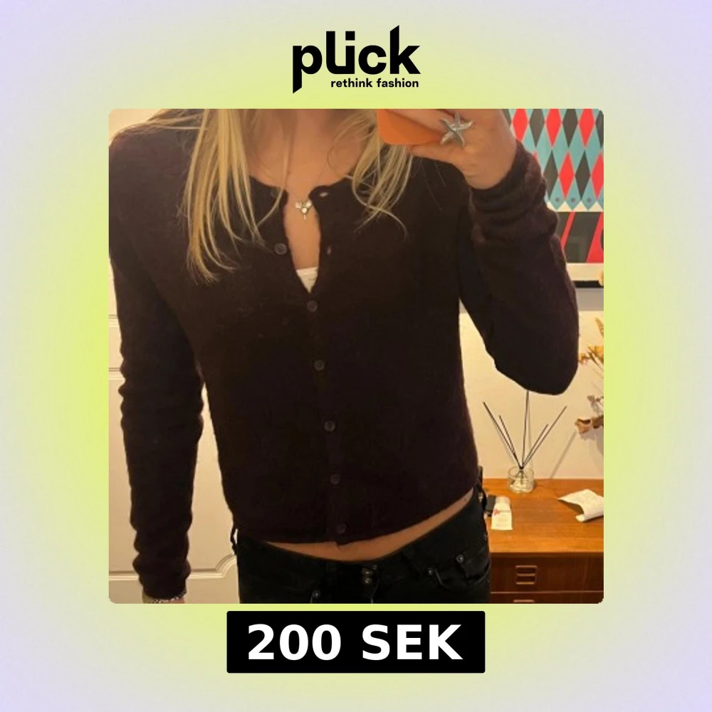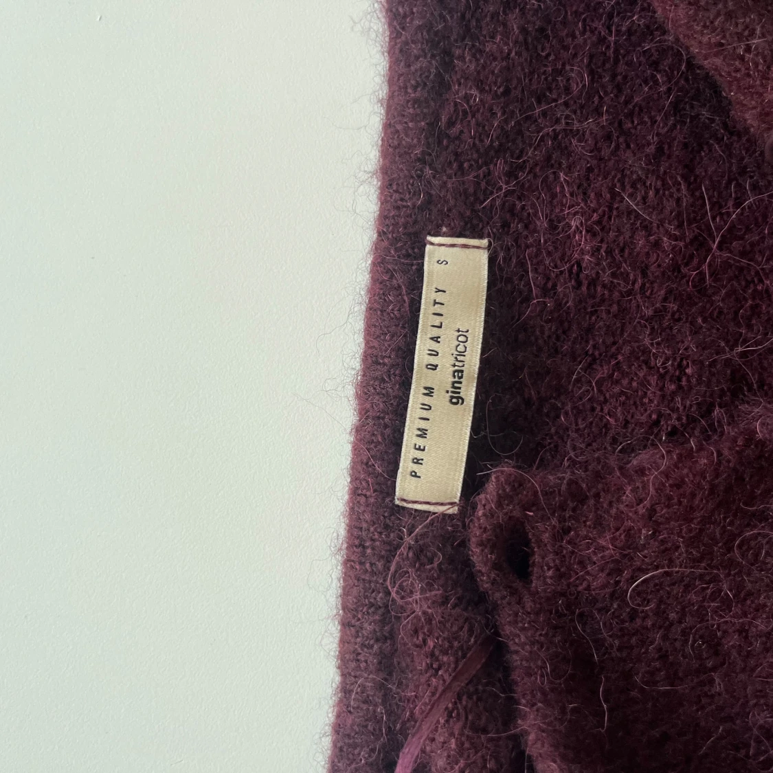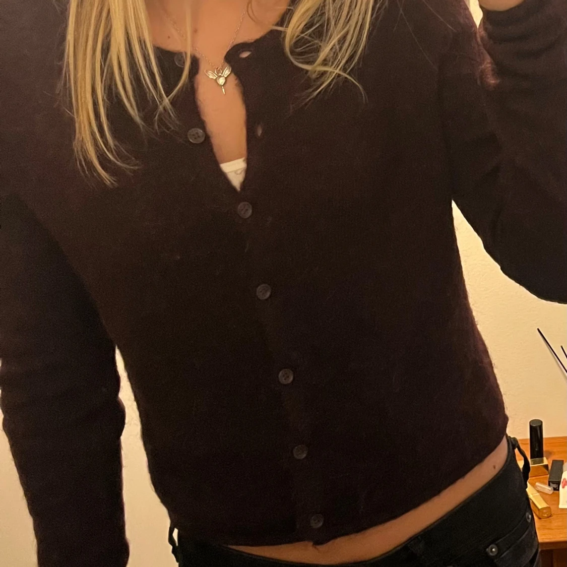 Säljer en mysig vinröd kofta från Gina Tricot i stickad ullmix. Koftan har långa ärmar, knappar hela vägen och en croppad passform som ger en trendig look. Perfekt att slänga över ett linne eller t-shirt för en chill vibe.