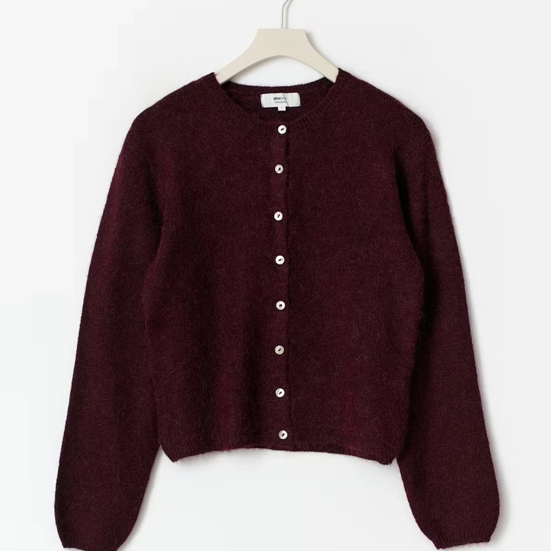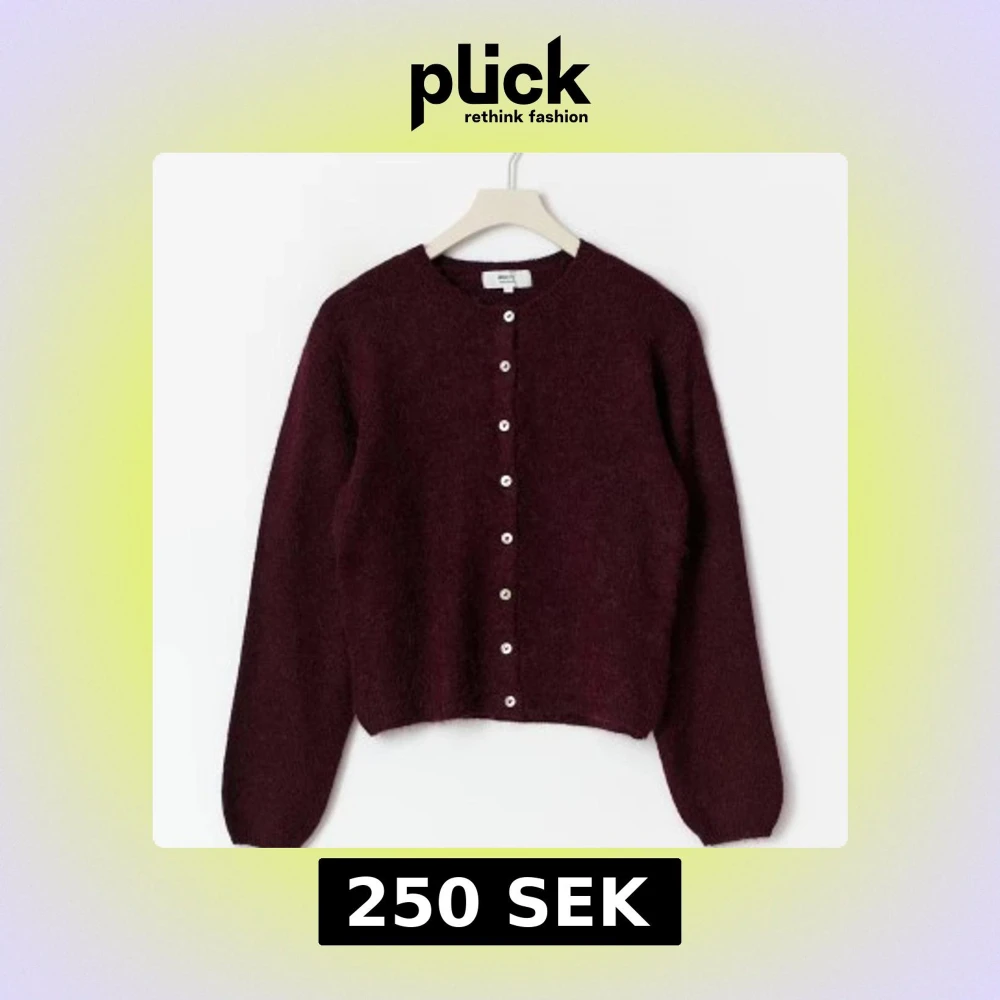 Mysig vinröd kofta från Gina tricot med rund halsringning. Långärmad och stickad i ett fluffigt material som passar perfekt till kyligare dagar. Enkel och stilren design som är lätt att matcha. Alpacka blend.