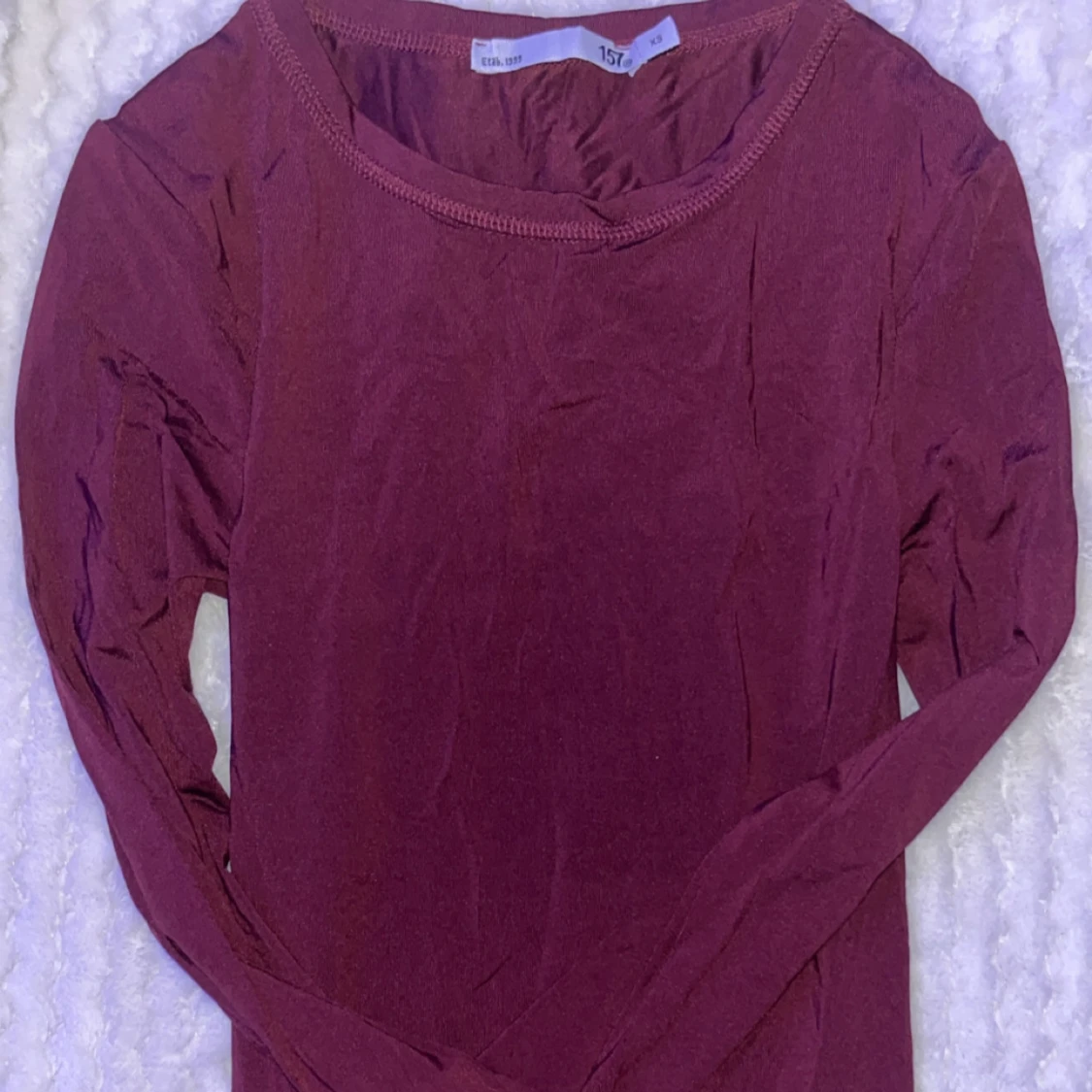 Säljer en stilren vinröd långärmad topp från 157. Perfekt för lager-på-lager eller att bära som den är. Enkel design med rund halsringning. Storlek XS❤️