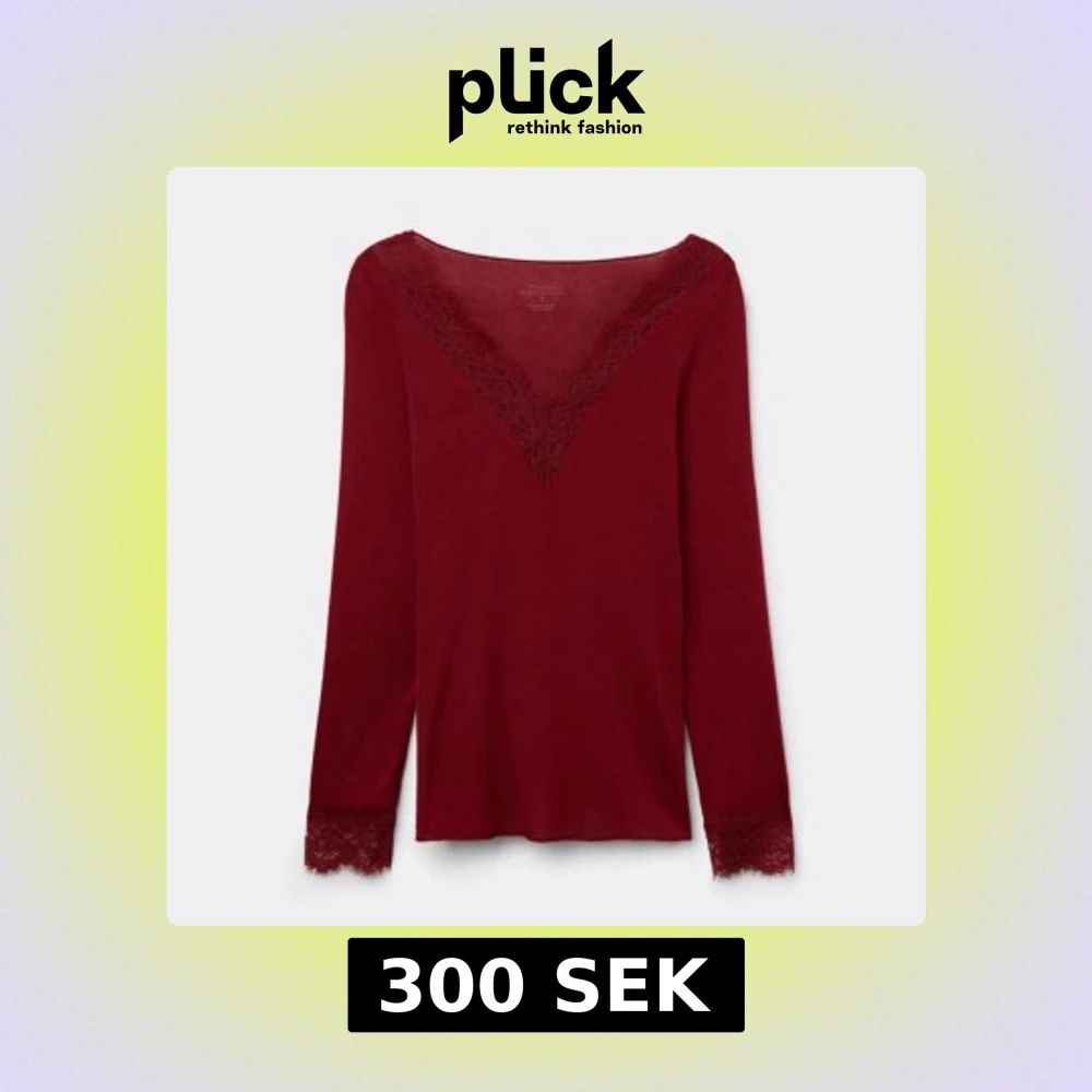 Vinröd långärmad topp med spetsdetaljer