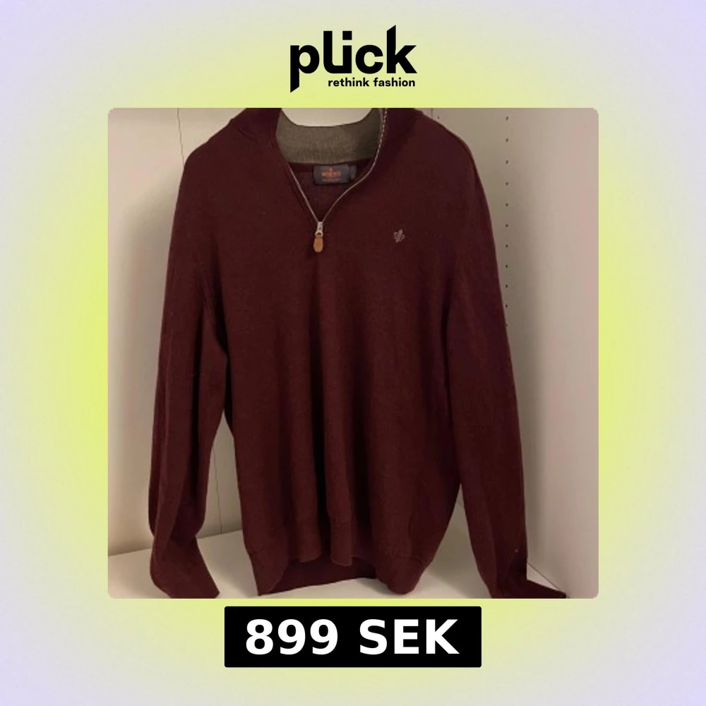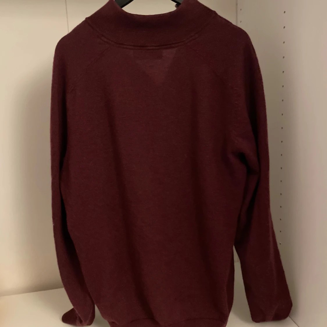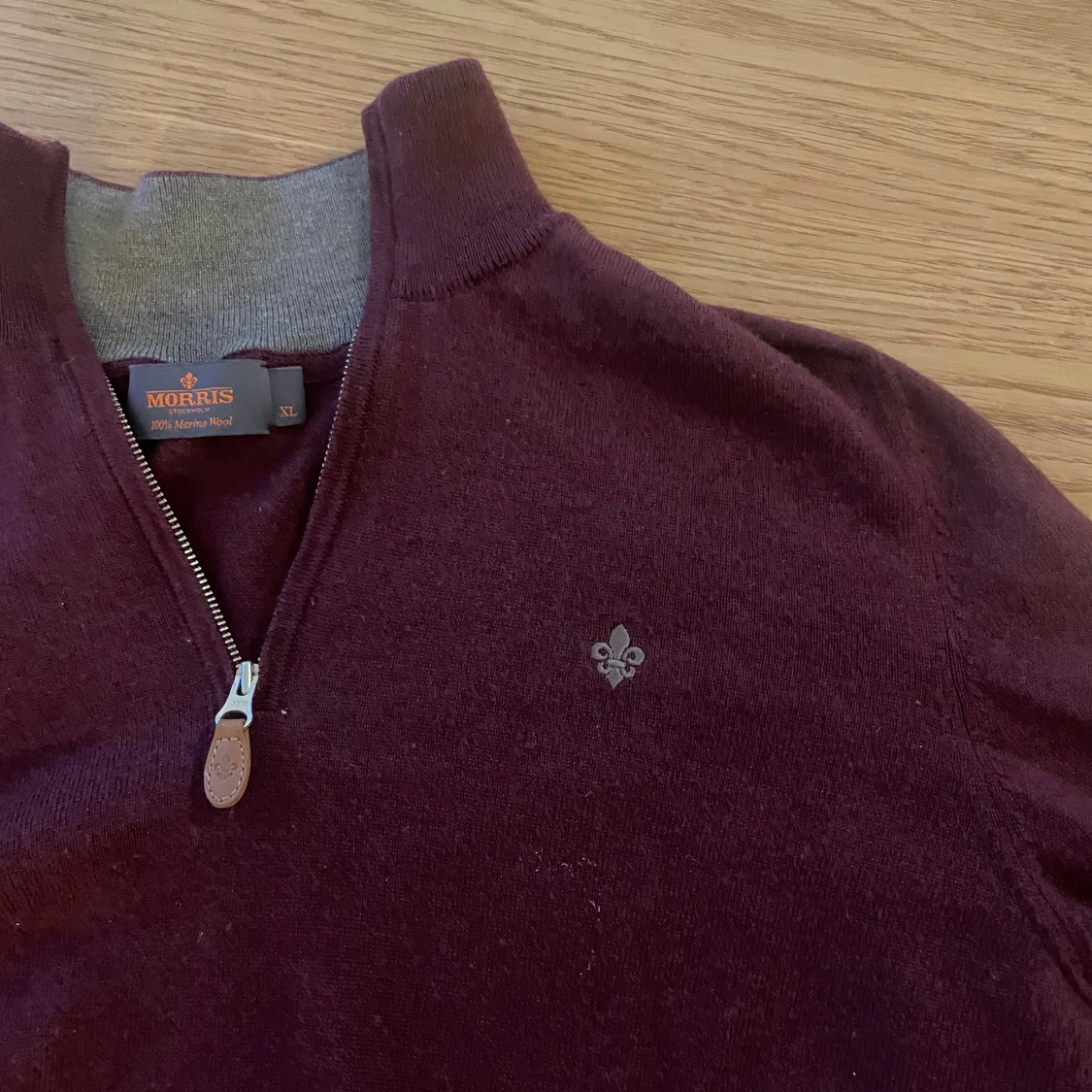 Vinröd långärmad tröja från Morris i 100% merinoull. Tröjan har en stilren half zip-dragkedja med läderdetalj och liten broderad logga på bröstet. Perfekt för dig som gillar klassisk och snygg stil med en modern touch. Står att strl är XL men den har krympt i tvätten som lett till att den är M/L i storleken. Annars är den i väldigt bra skick. Nypris 1799kr