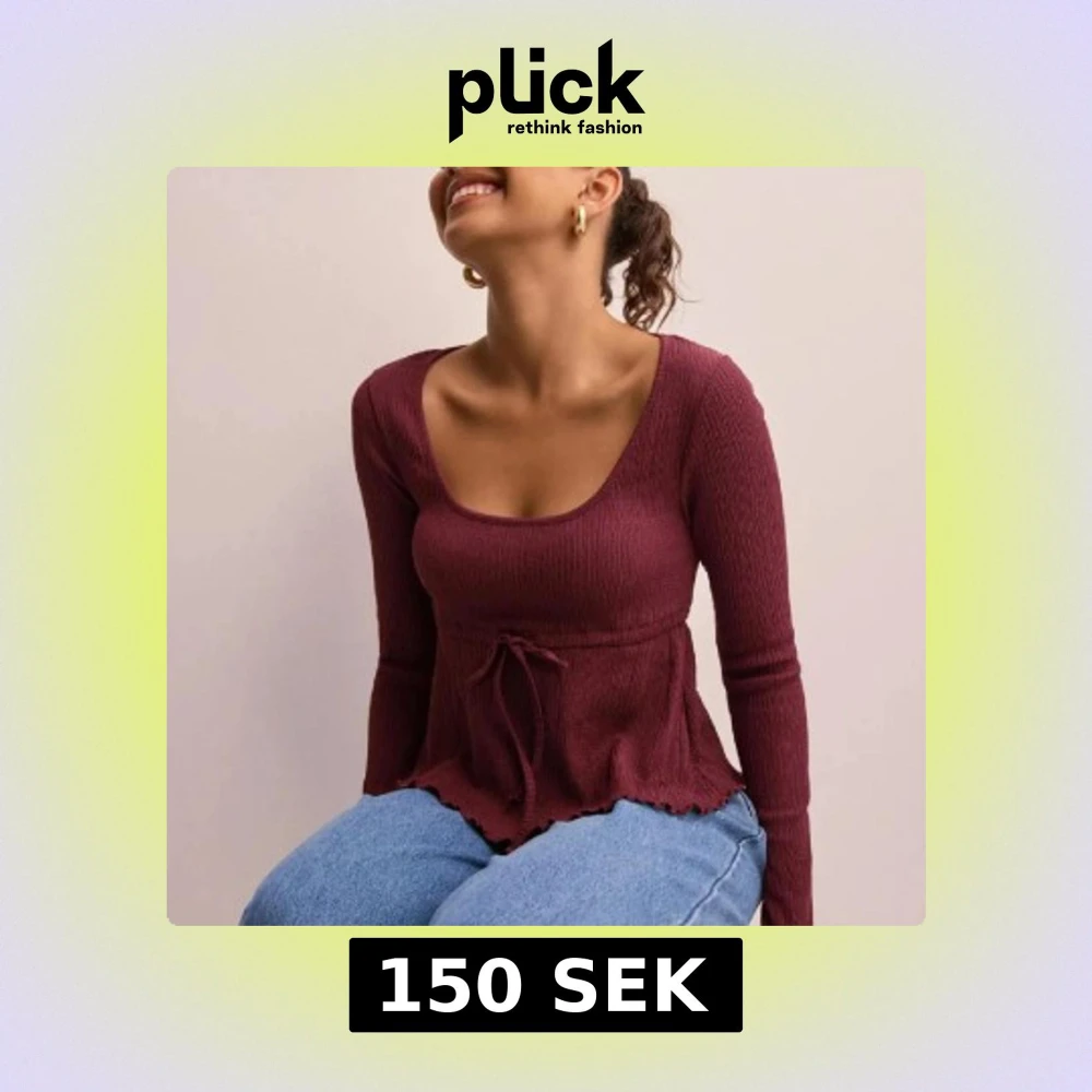 Snygg vinröd ribbad topp med långa ärmar och knytning i midjan. Knappt använd, slutsåld på hemsidan!🥰