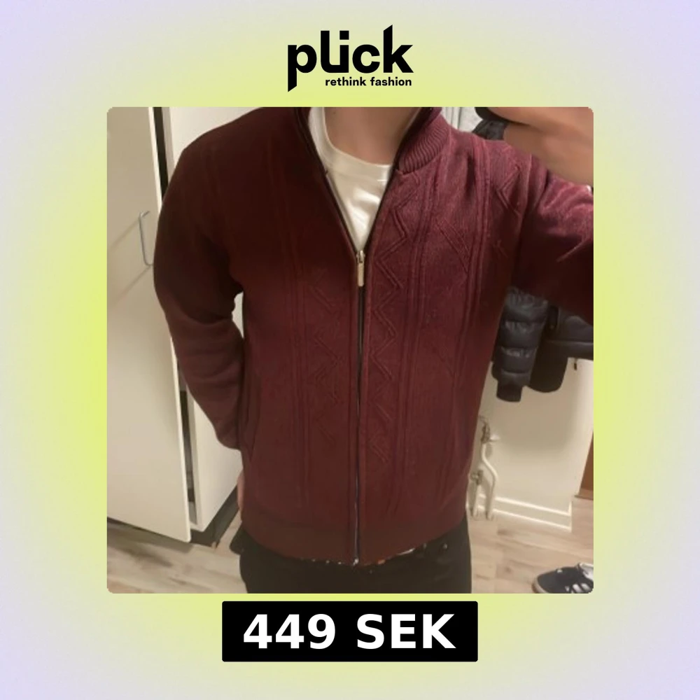 Skit snygg vinröd stickad cardigan med mönster. Superskönt material innuti. Modellen är 180cm, 73kg. Priset kan såklart diskuteras.
