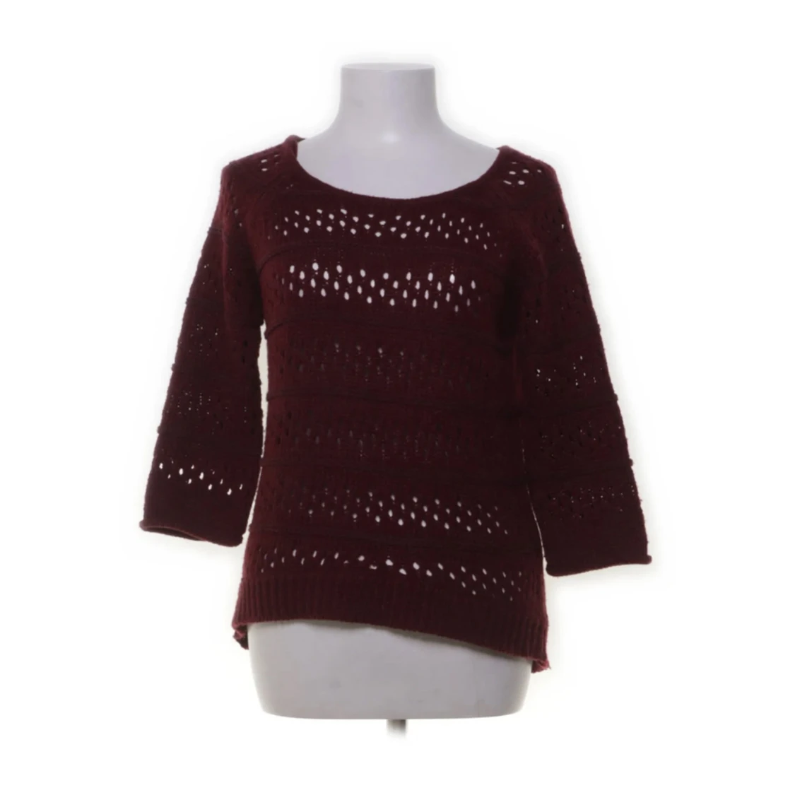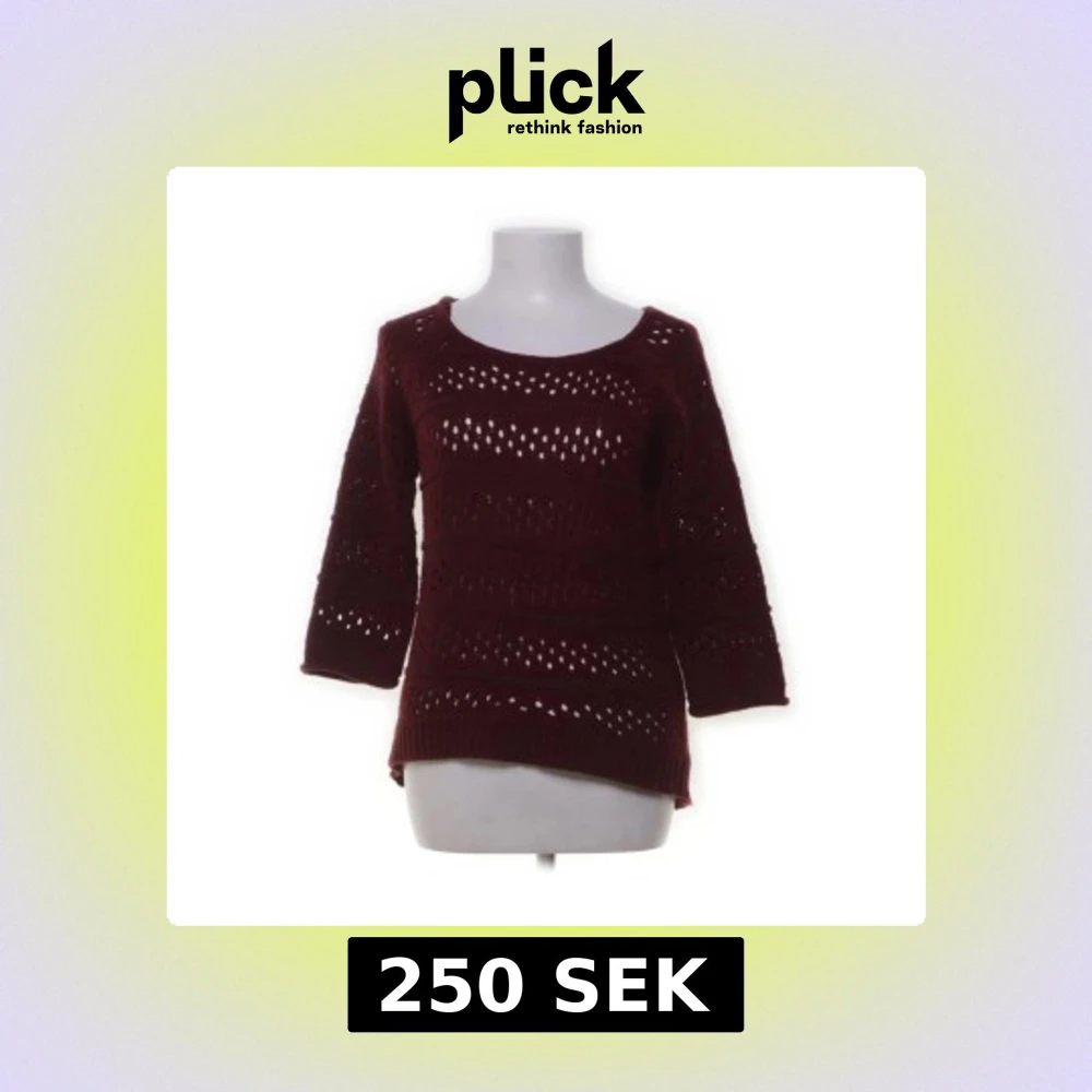 Säljer en vinröd stickad tröja med trekvartsärm och ett genombrutet mönster. Perfekt och vacker topp att ha på sig både på event/fester men också till skolan/vardag. Tröjan har en rund halsringning och en avslappnad passform. Den säljs inte längre och går inte att få tag på någonstans då jag köpte den för några år sedan. Köptes för 500kr