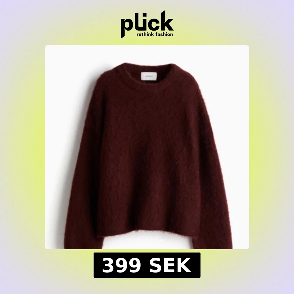 Mysig vinröd stickad tröja från HM med rund halsringning och lång ärm. Tröjan har en fluffig känsla och är perfekt för kyliga dagar. Enkel och stilren design som passar till allt. Storlek M men råkade krympa den i tvätten så är nu storlek XS/S. Original pris ca 900kr/1000kr