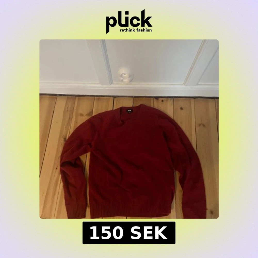 Snygg vinröd stickad tröja från Uniqlo i storlek S. Tröjan har en klassisk rund hals och långa ärmar med ribbade muddar. Perfekt för dig som gillar enkel och stilren design med en djup röd färgton.
