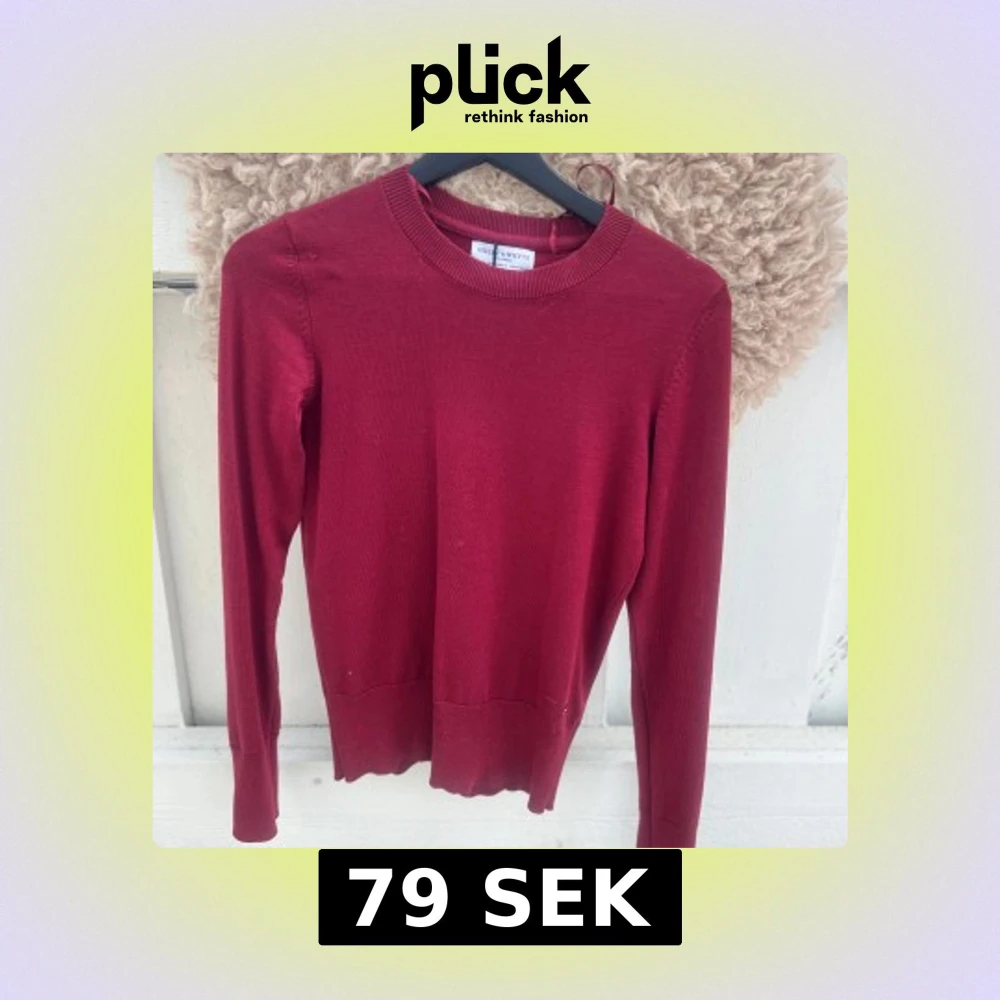 Vinröd långärmad tröja från Holly & Whyte med rund halsringning och dekorativa knappar vid ärmslutet. Tröjan är i mjukt, tunt stickat material och har en klassisk, enkel design. SKRIV INNAN KÖP! endast använd en gång.❤️