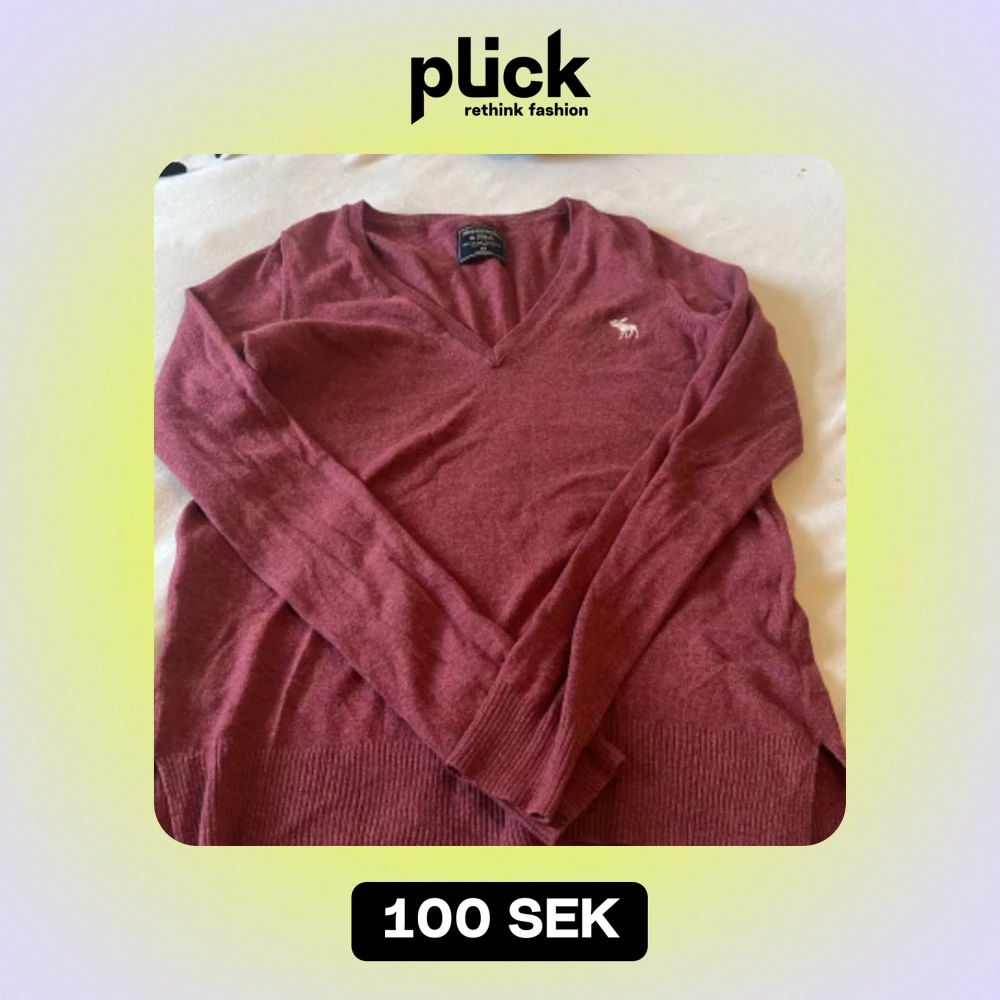 En vinröd tröja från Abercrombie & Fitch med en liten vit älg broderad på bröstet. Tröjan har en v-ringad hals och långa ärmar med ribbstickade muddar vid ärmslut och nederkant. Köpt second hand, säljer då den inte kommer till användning. Jätte fint skick