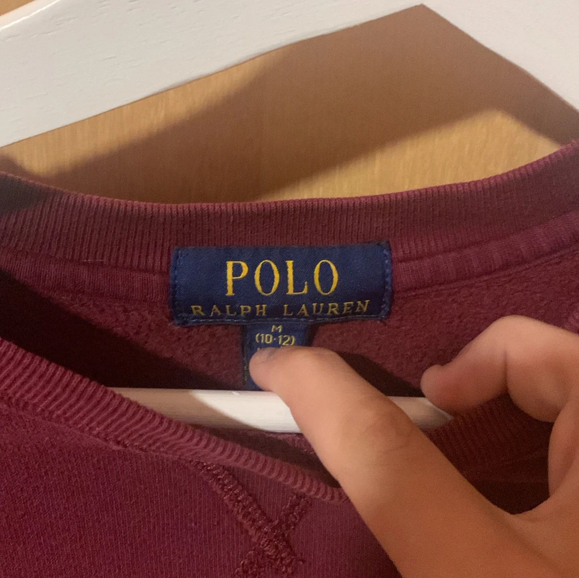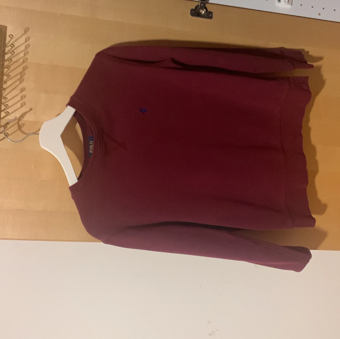 Vinröd långärmad tröja från Polo Ralph Lauren med klassisk rund halsringning och blå broderad logga på bröstet. Tröjan är i mjuk bomull och har en enkel, stilren design som passar perfekt till jeans eller chinos.