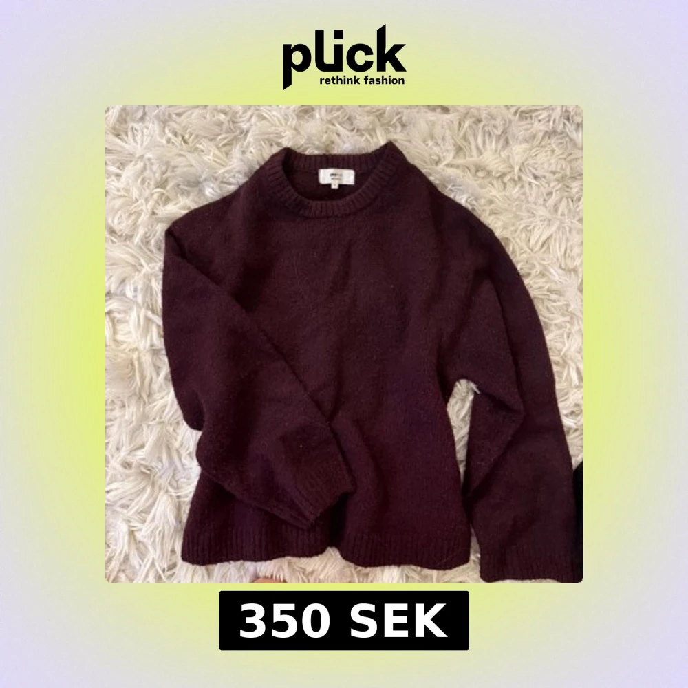 Mysig vinröd stickad tröja från Gina Tricot i ullblandning. Tröjan har rund halsringning, ribbade muddar och lång ärm. Perfekt för kyliga dagar och enkel att matcha med jeans eller kjol.