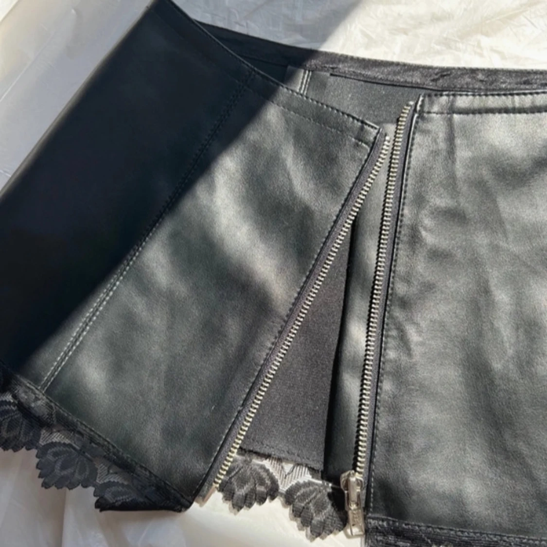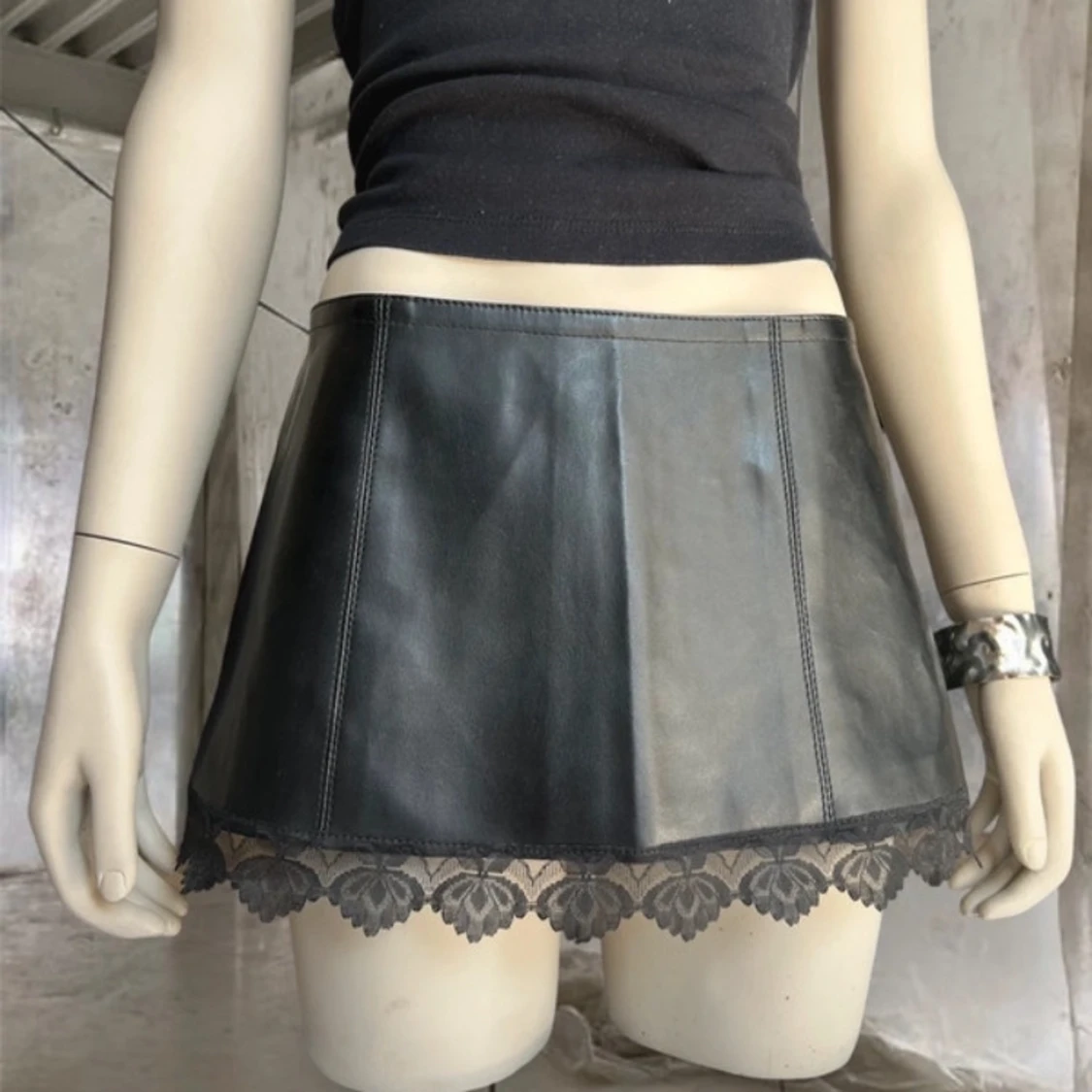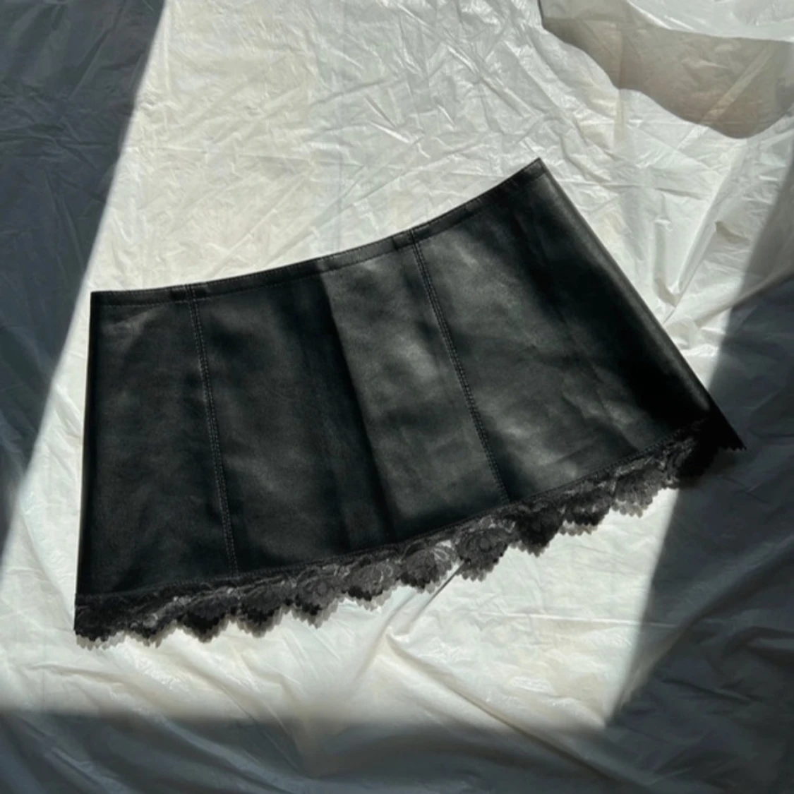Svart minikjol, ca 2 cm av spetsen har lossnat lite där bak men de inget som märks när man har den på sig 🖤