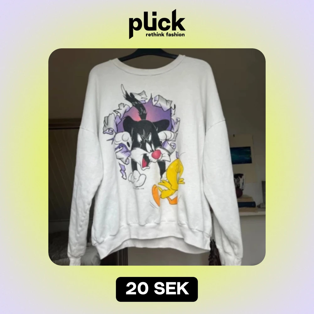 Långärmad tröja från 80 eller 90-talet med Tweety & Sylvester tryck. Storleken är en One-Size. 🤍