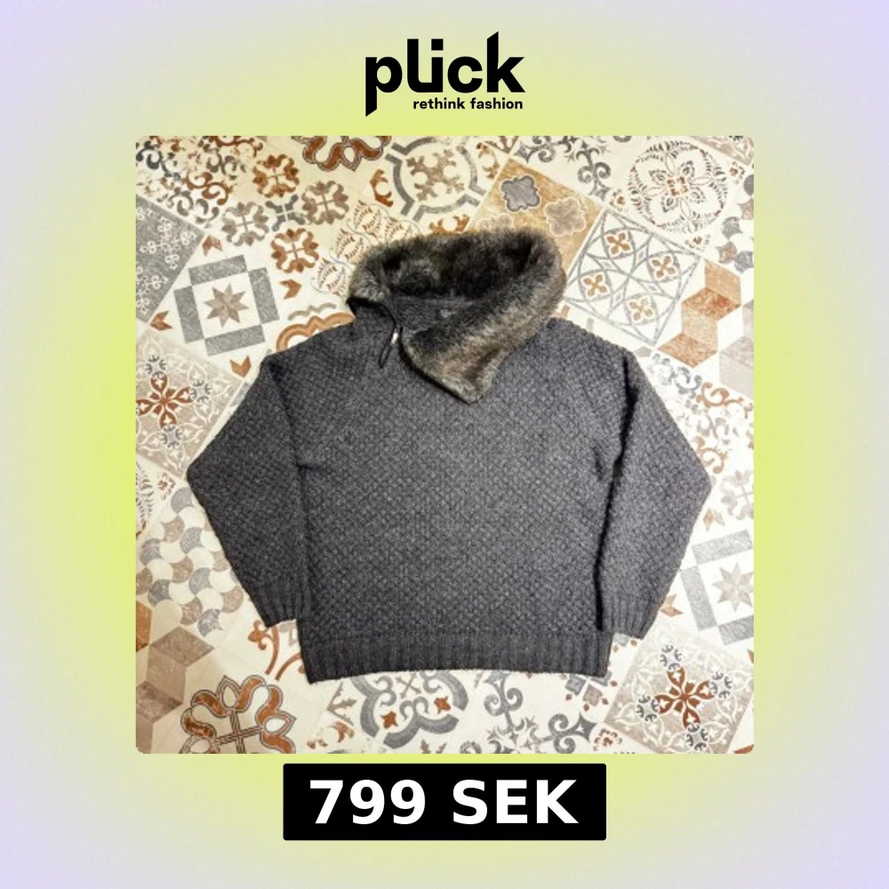 Mysig grå stickad tröja från Zara Man med långärmad design och bred krage i mjuk päls. Tröjan har en half zip-dragkedja vid halsen och ett diskret mönster i stickningen. Perfekt för kalla dagar!