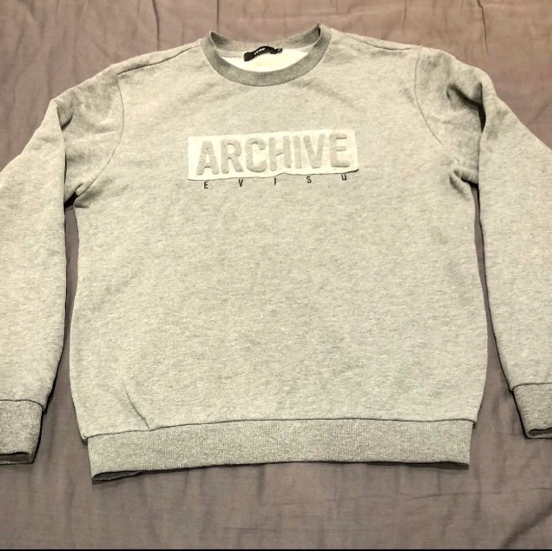 Grå sweatshirt från det japanska designermärket evisu. Gjord i bomull i Japan. Storlek small