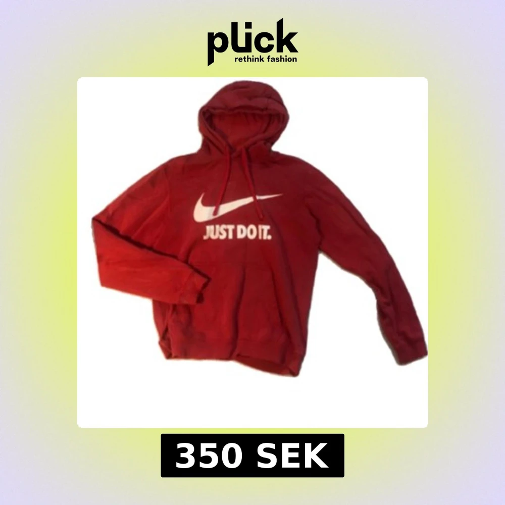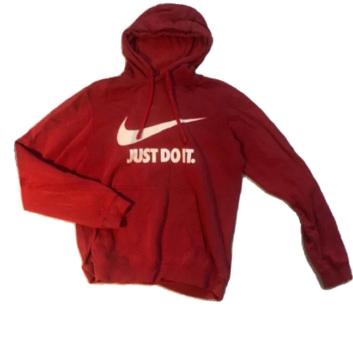 Nike hoodie i rött med klassiskt vitt 'Just Do It.' tryck och swoosh på bröstet. Tröjan har huva med snörning och en stor magficka. Perfekt för dig som gillar sportig och avslappnad stil.