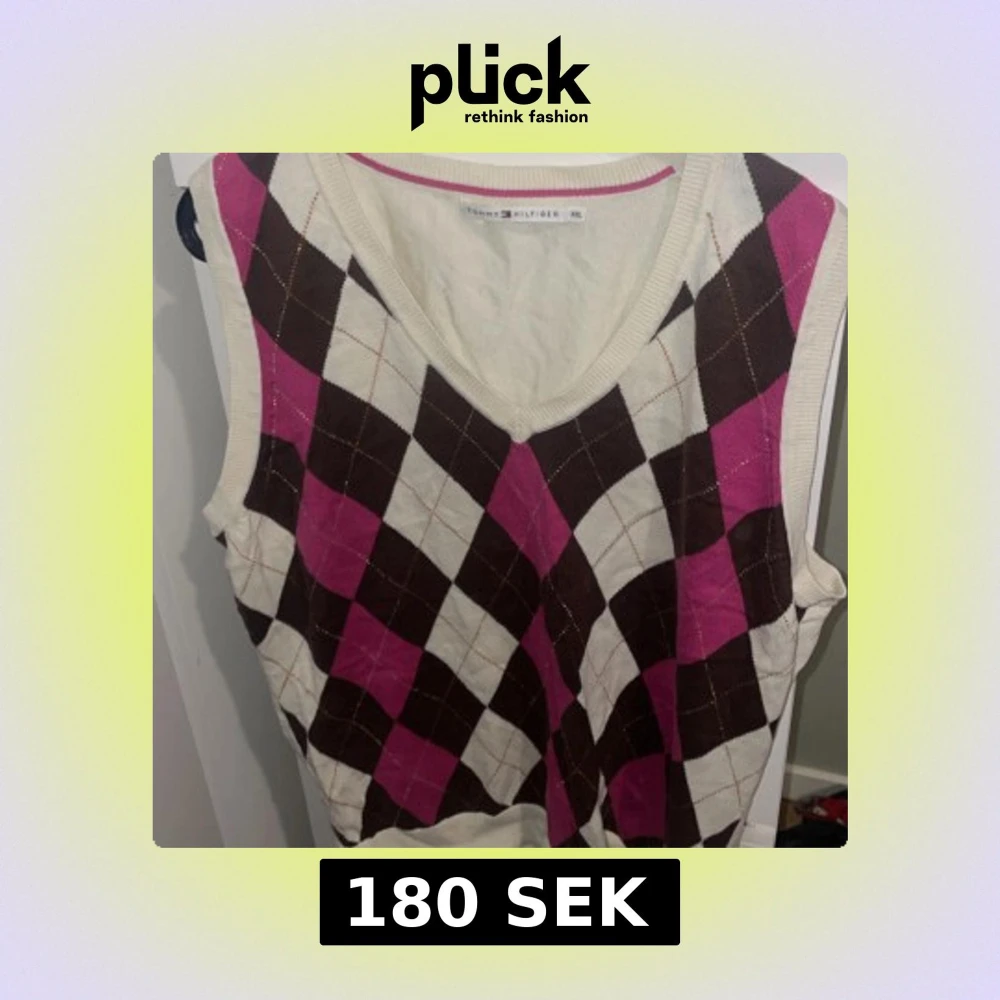 Snygg väst från Tommy Hilfiger i storlek XXL med klassiskt rutig mönster i brunt, rosa och vitt. V-ringad modell med ribbade kanter. Perfekt för lager-på-lager och en preppy stil.