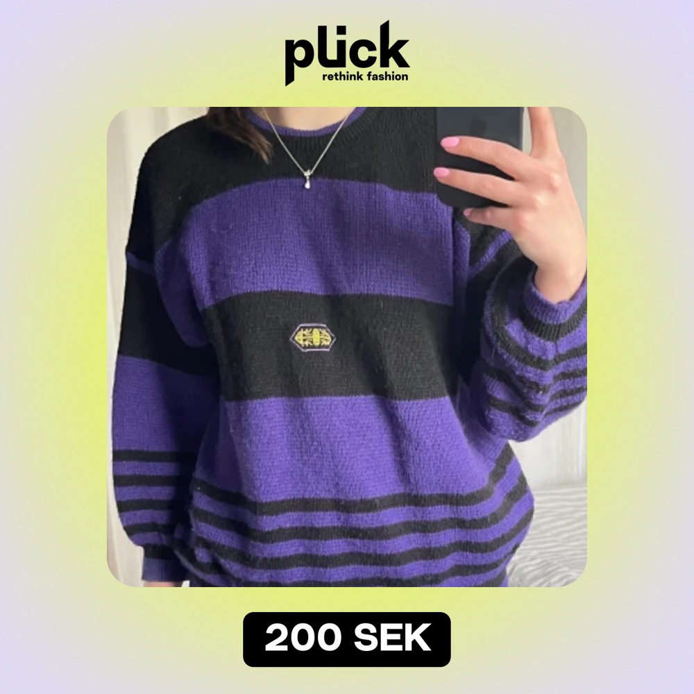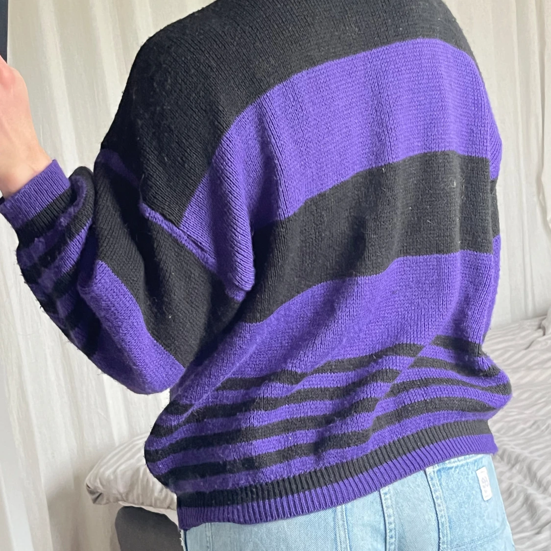 Supercool stickad tröja köpt i en vintage butik. Snygg detalj i guld. Ärmarna är något puffiga vilket är supersnyggt. Står att det är storlek M men passar även S💜