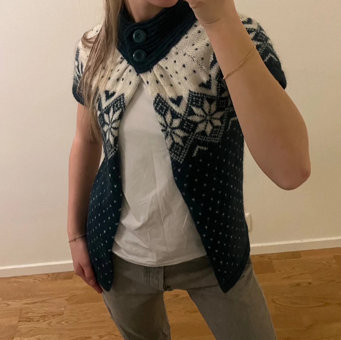 Söt stickad kofta, vintage! Två knappt vid halsen, lite längre över höften. Super fint skick! Storlek xs men passar mig som är S🩷