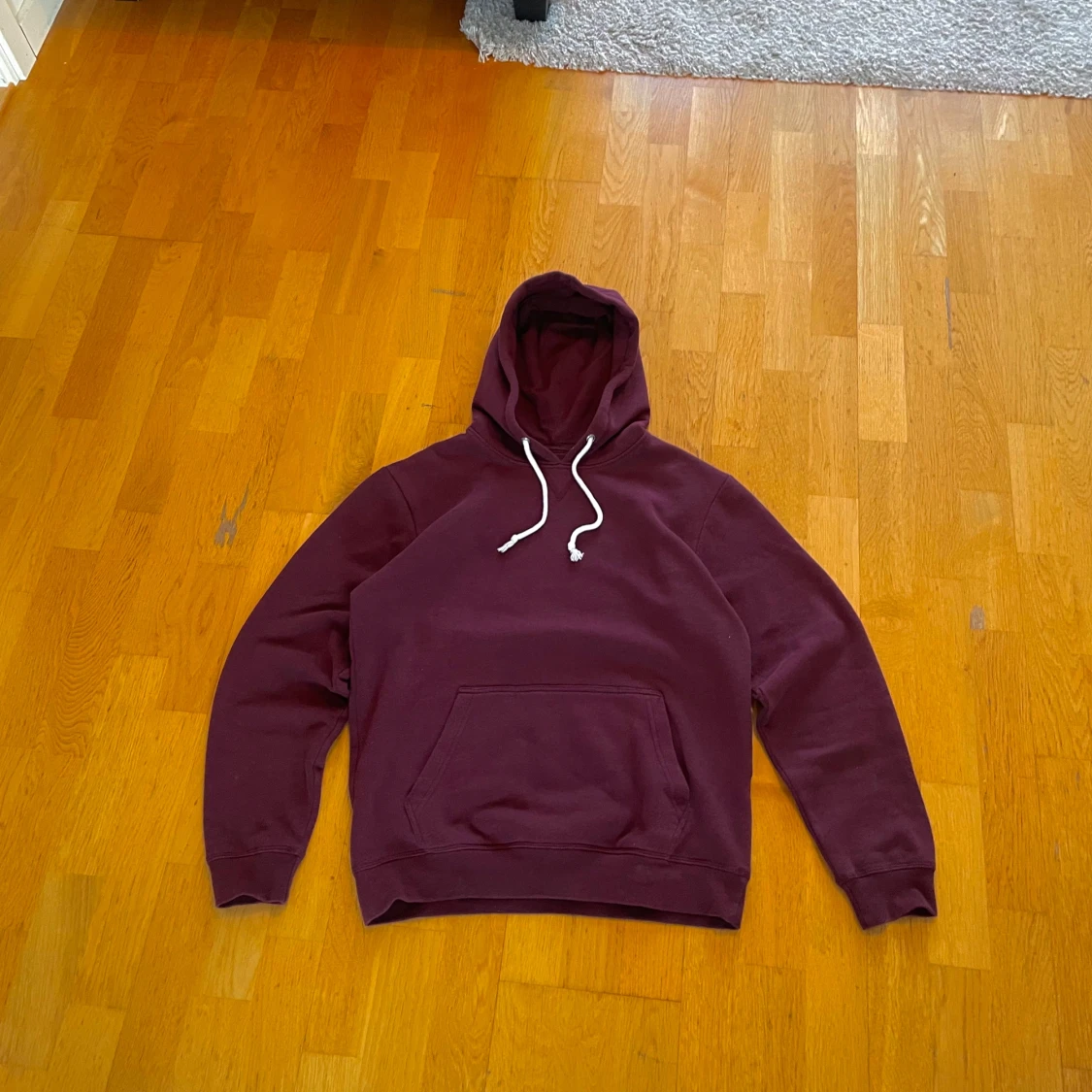 Säljer en vinröd hoodie med en stor ficka framtill och justerbara snören i huvan. Perfekt för kyliga dagar och en avslappnad stil. Passar bra till jeans eller mjukisbyxor. Hör av dig vid intresse!