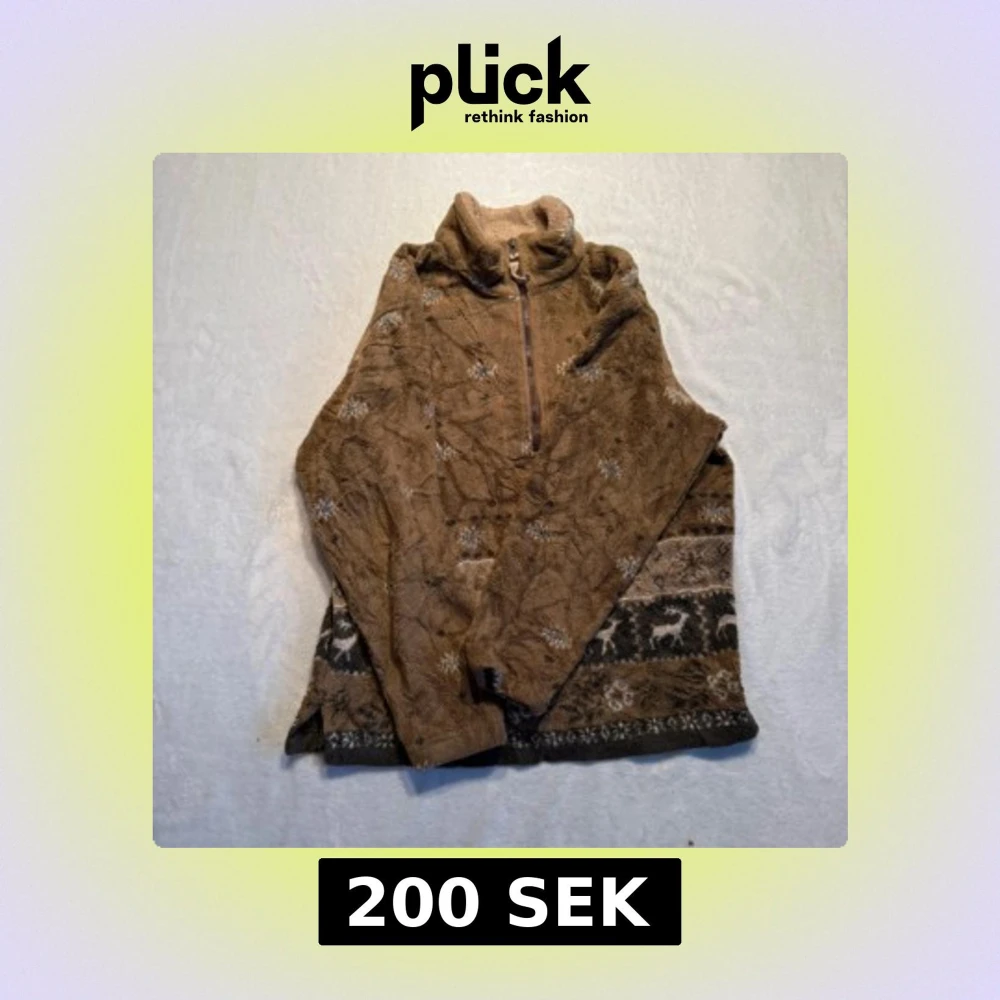 Mysig brun half zip fleece från Woolrich med ett naturinspirerat mönster. Half zip och hög fodrad krage för extra värme. Perfekt för våren