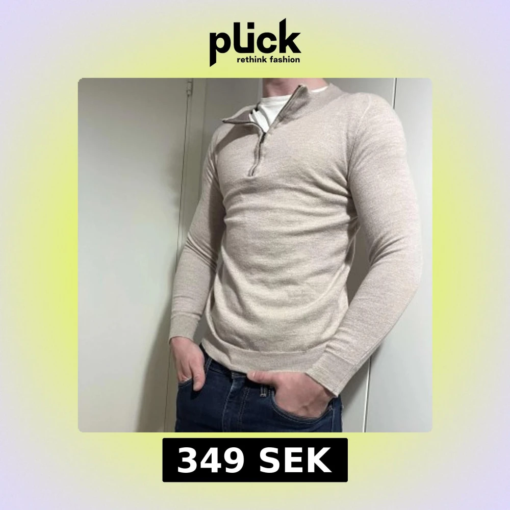 Snygg beige långärmad tröja med dragkedja vid halsen. Perfekt för en stilren och avslappnad look. Passar bra till jeans.