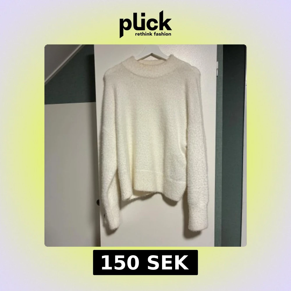 Supermjuk och fluffig vit stickad tröja från H&M i storlek L i fint skick. Tröjan har en bred ribbad kant nertill och vid ärmslut, samt en högre rund halsringning. Perfekt för lager-på-lager och höst- och vintergarderoben.