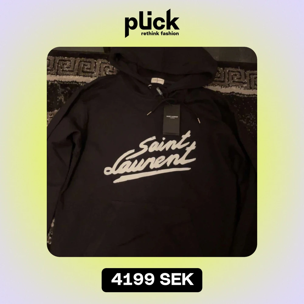 Säljer en snygg svart hoodie från Saint Laurent med deras ikoniska logga i vitt på framsidan. Perfekt för både vardag. Helt ny med taggar kvar. Passar perfekt till höst och vinter. Kvitto finns!