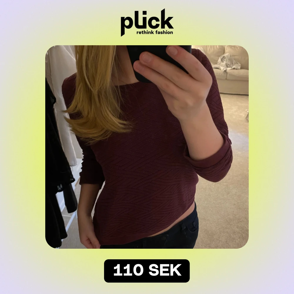 Säljer en snygg vinröd tröja i storlek S. Den har ett fint mönster och är perfekt för vardag. Tröjan är i mycket bra skick och har trekvartsärmade ärmar. Passar perfekt till höst och vinter!
