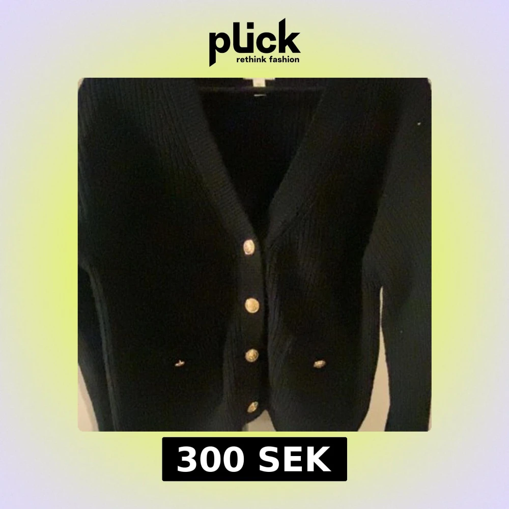 Snygg svart kofta med dekorativa guldknappar och två praktiska fickor framtill. Helt ny aldrig använd har bara tagit av prislappen❤️