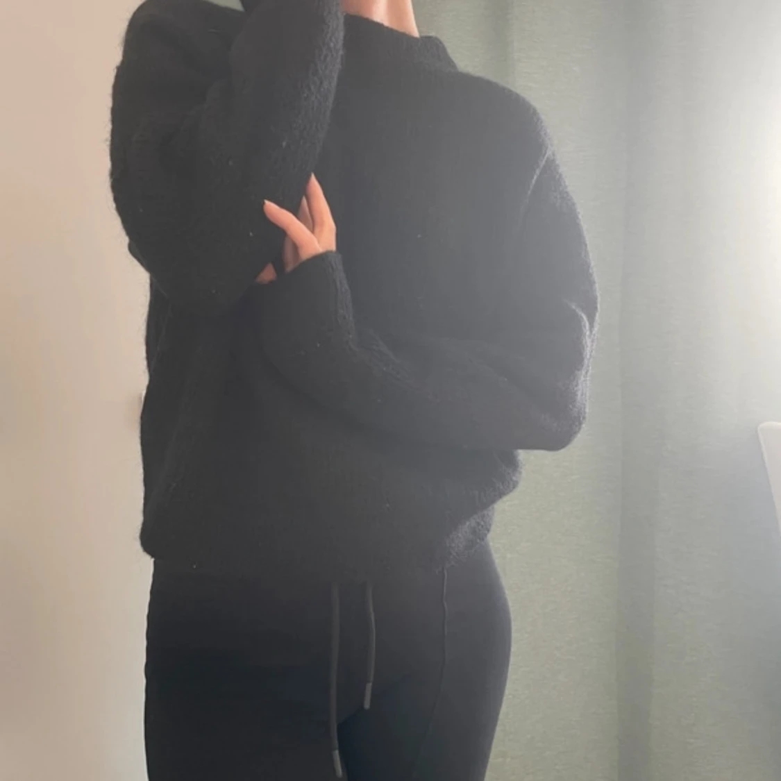 Mysig svart stickad tröja från MSCH Copenhagen. Tröjan är perfekt nu när kyliga dagar närmar sig och är enkel att matcha med allt. Materialet är fluffigt och ger en skön känsla. Använd något enstaka tillfälle, säljes bara för att den inte riktigt är min stil.