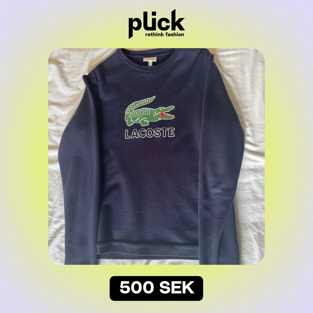 Säljer en snygg mörkblå tröja från Lacoste med det klassiska krokodilmärket på bröstet. Tröjan är i bomull och polyester, vilket gör den både bekväm och hållbar. Den är i storlek 164 men passar som en xs/s😊